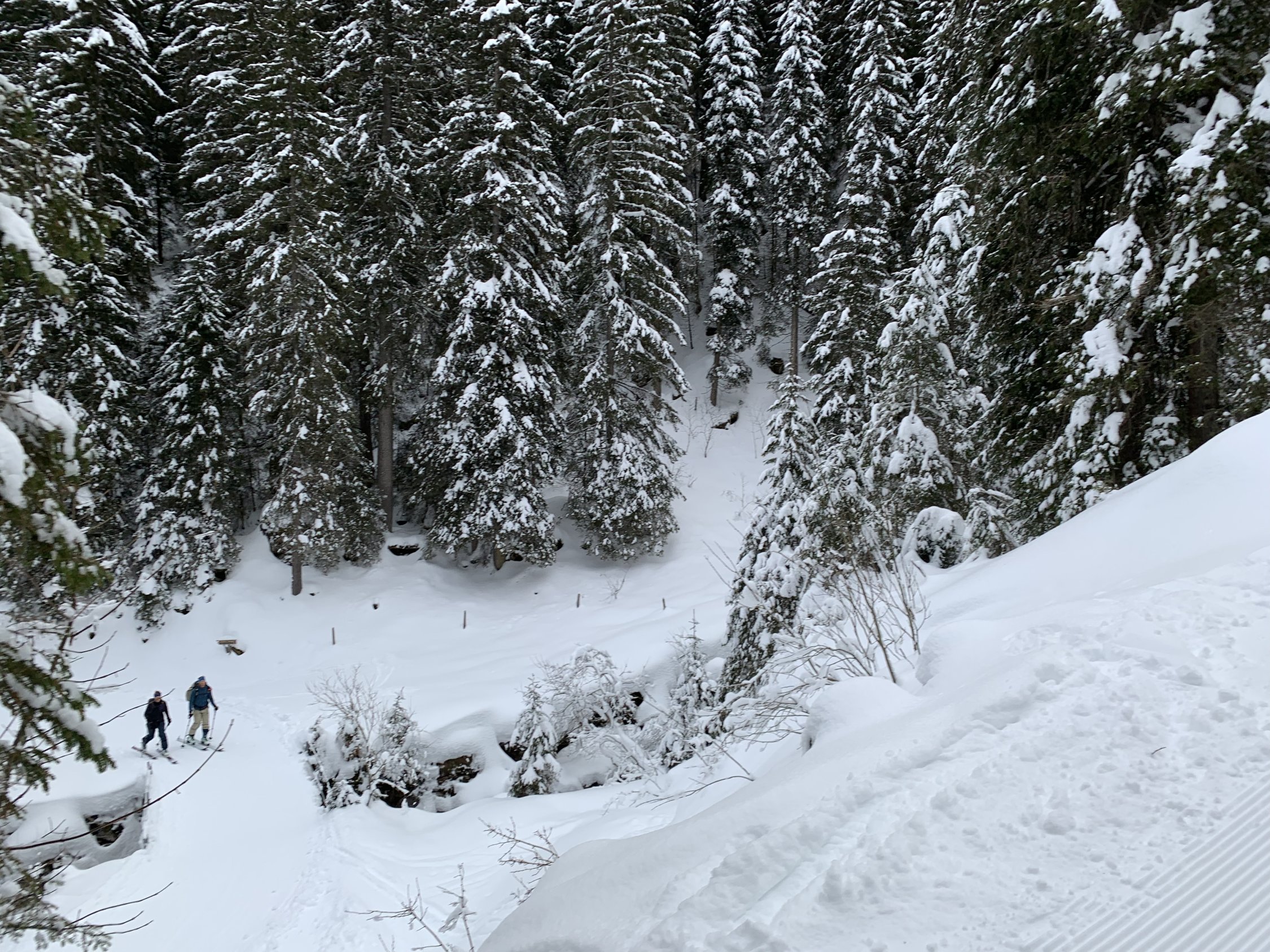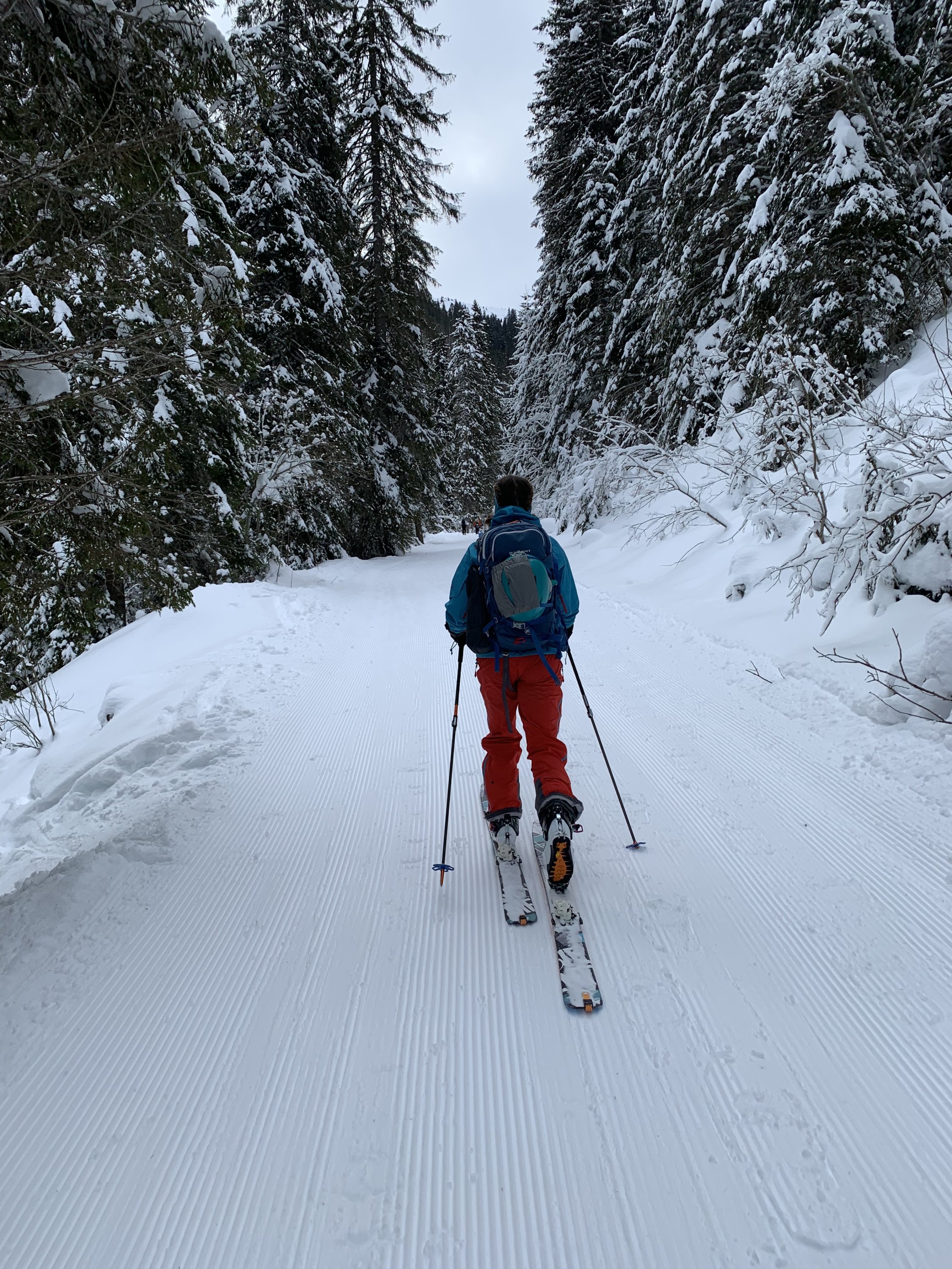 Unterer Teil ordentlich eingeschneit und gute Spur vorhanden. Weg bis Alp Grimmi pistenähnlich, danach weiter auf guter Spur bis Grimmifurrgi.