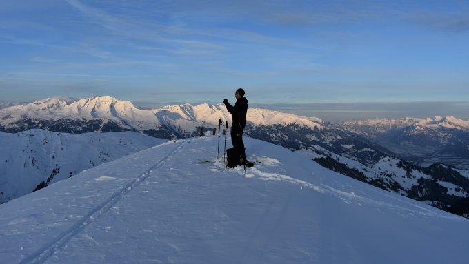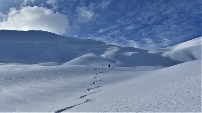 Genügend Schnee ab PP Hinterberg. Der Hochwang ist zz abgeblasen und hart, Pulverschnee hat es erst vom Ratoser Stein Richtung Hasenlöchern.