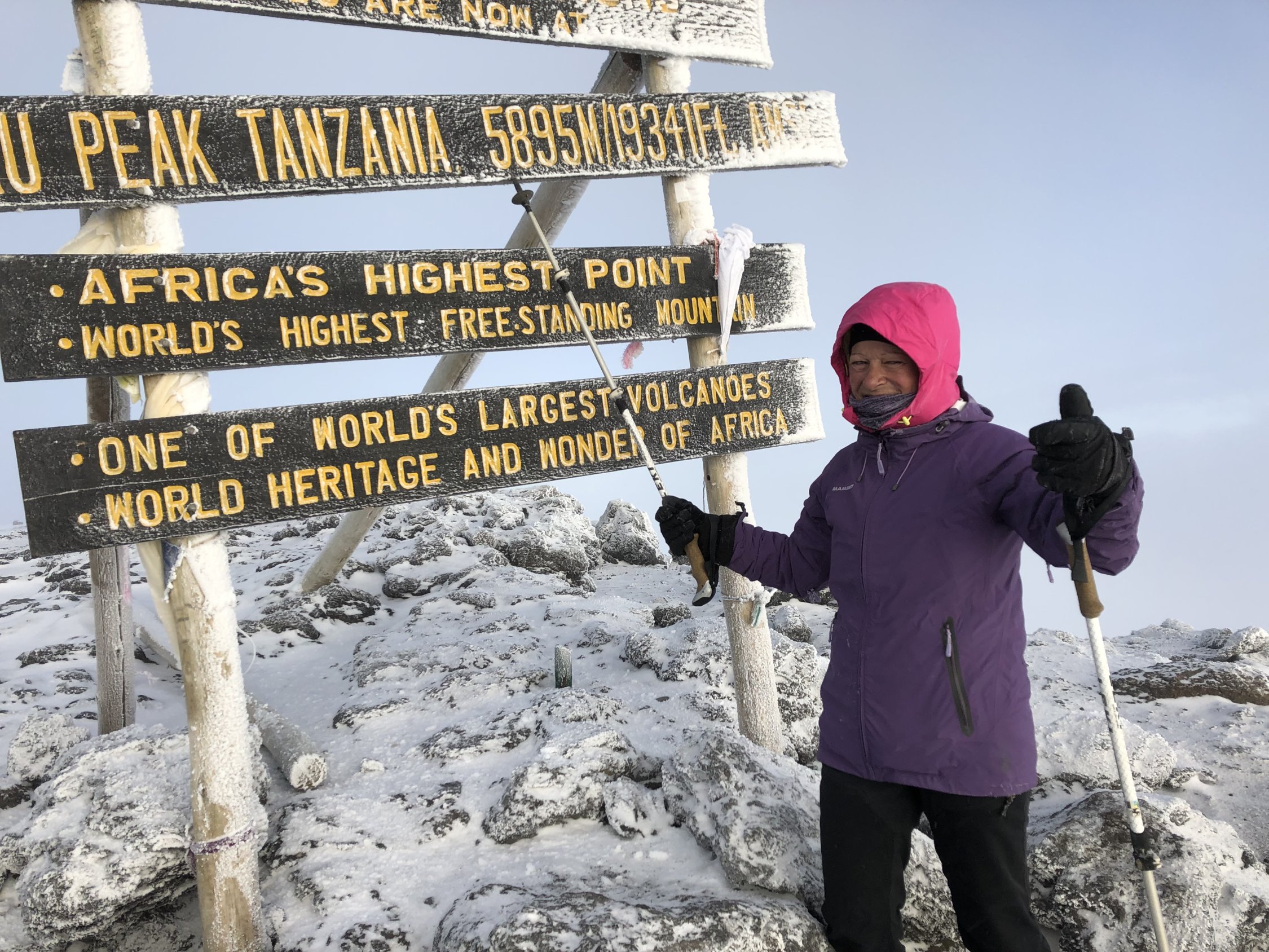Gipfelziel erreicht am 31.12.2018 nach 3 Übernachtungen in der Mandara Hütte, Horombo Hütte und zuletzt in der Kibohütte auf 4700m, danach um 1195m Aufstieg zum Uhuru Peak auf 5895m.