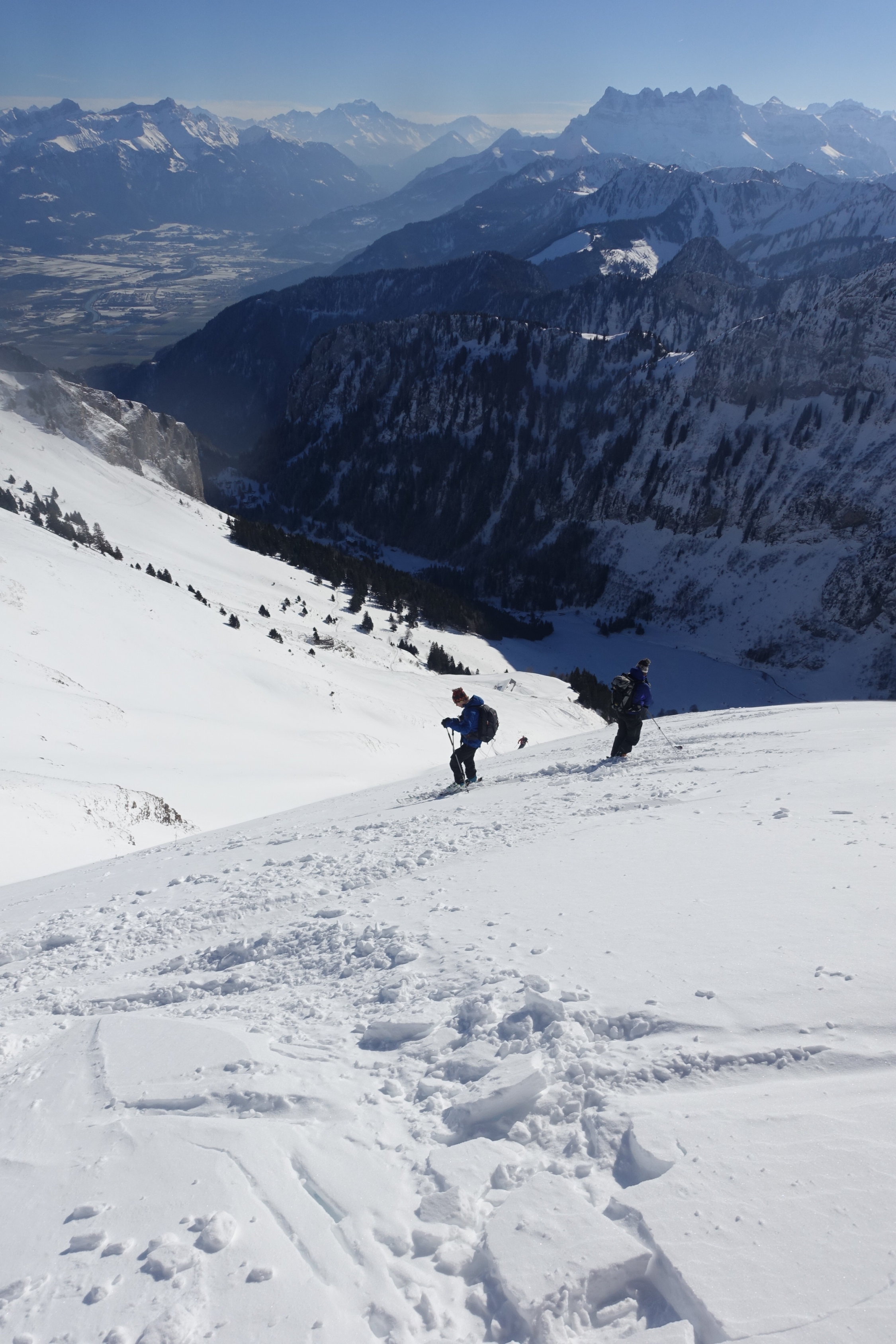 Aufstieg gespurt.Sehr starker Wind Gipfelbereich.Abfahrt über Südflanke oben sehr ab-/eingeblasen,wenig Schnee aber sehr heikel für Beurteilung(-Schneebrettgefahr).Ab 1 Alp(Kreutzung Aufstieg)schön zu fahrender Pulverschnee mit leichtem Winddeckel bis Taney,Abkürzung Schlittelweg schön zu fahren aber unten sehr knapp.