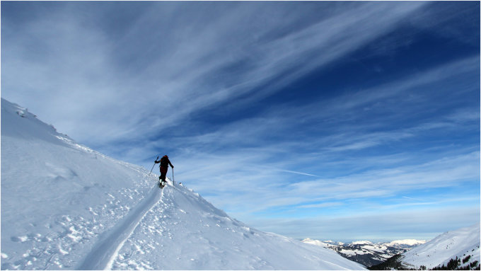 Nicht ganz so gut wie gestern, wobei das am abgewehten Grat liegt, über den ein ganzes Stück abgefahren werden muss.