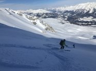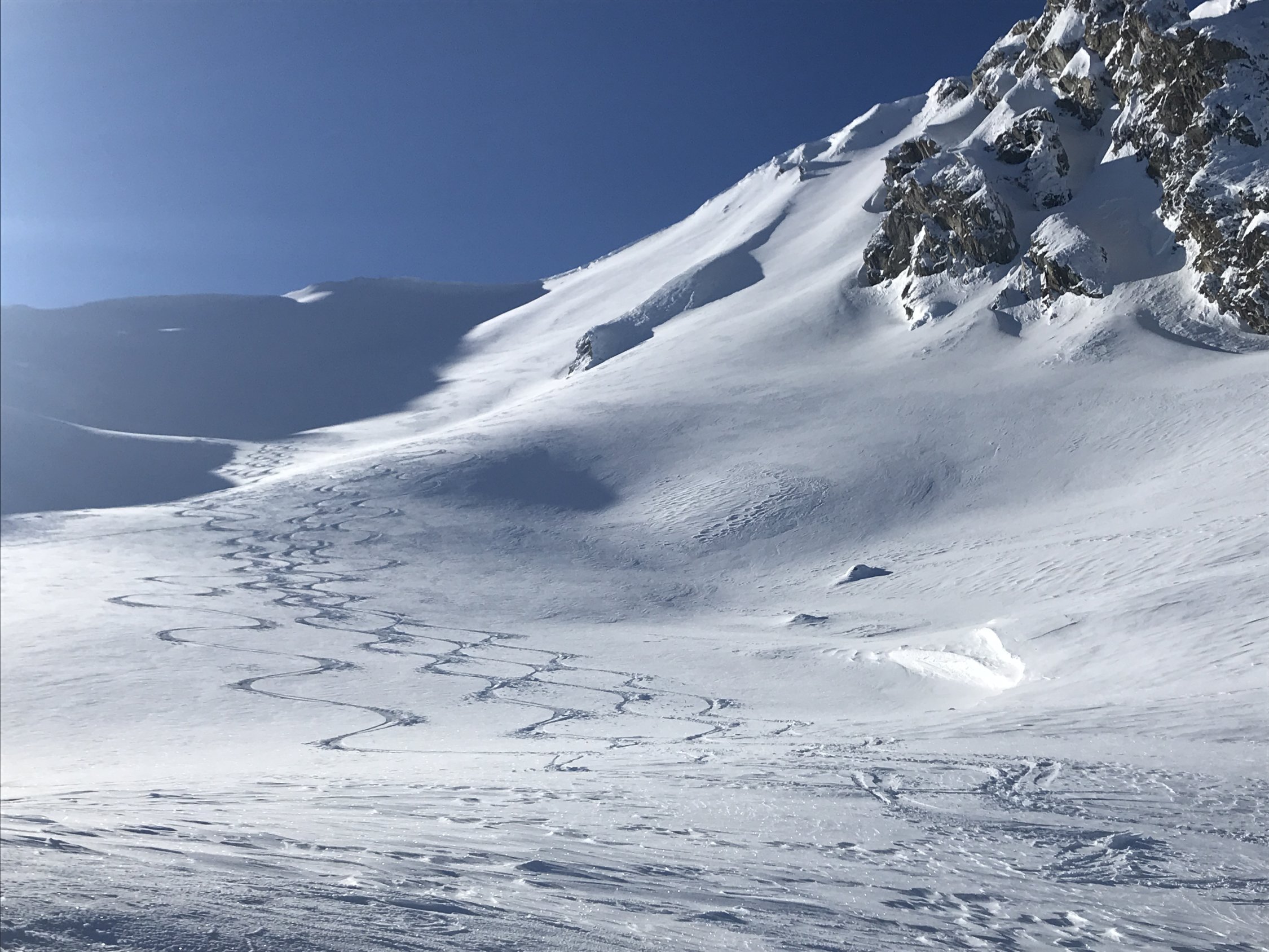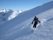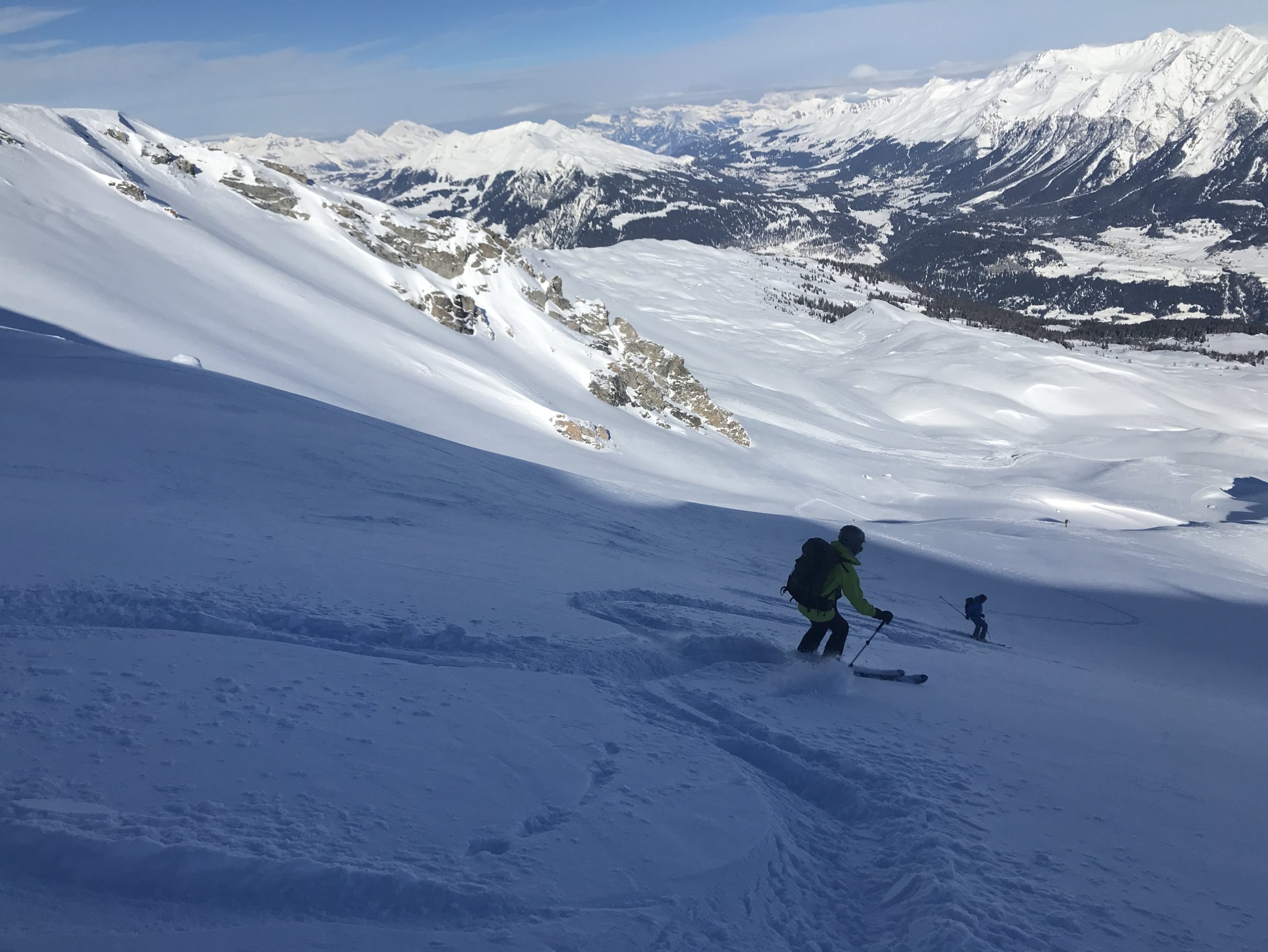 Im unteren Teil (Wald) bester Powder, ab ca. 2000 müM stellenweise windgepresst, aber immer gut fahrbar. Gipfelhang vom Powder Feinsten :-)