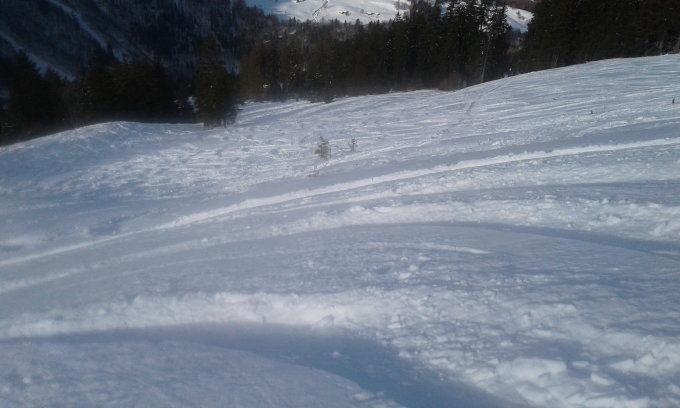 Der Schnee ist super!Allerdings komplett zerfahren was die Abfahrt mühsam macht.