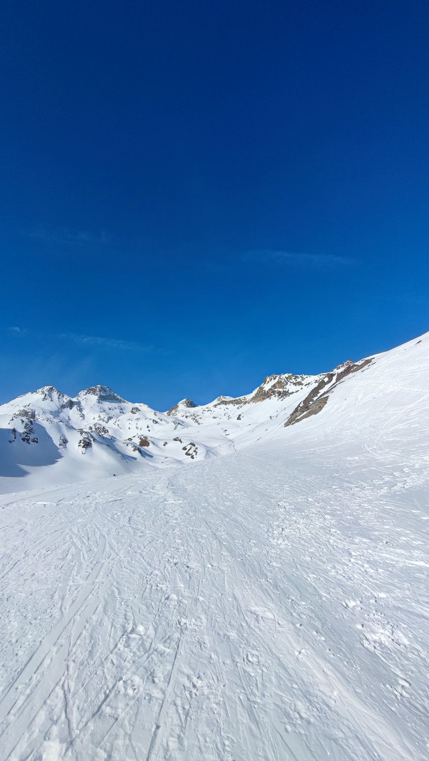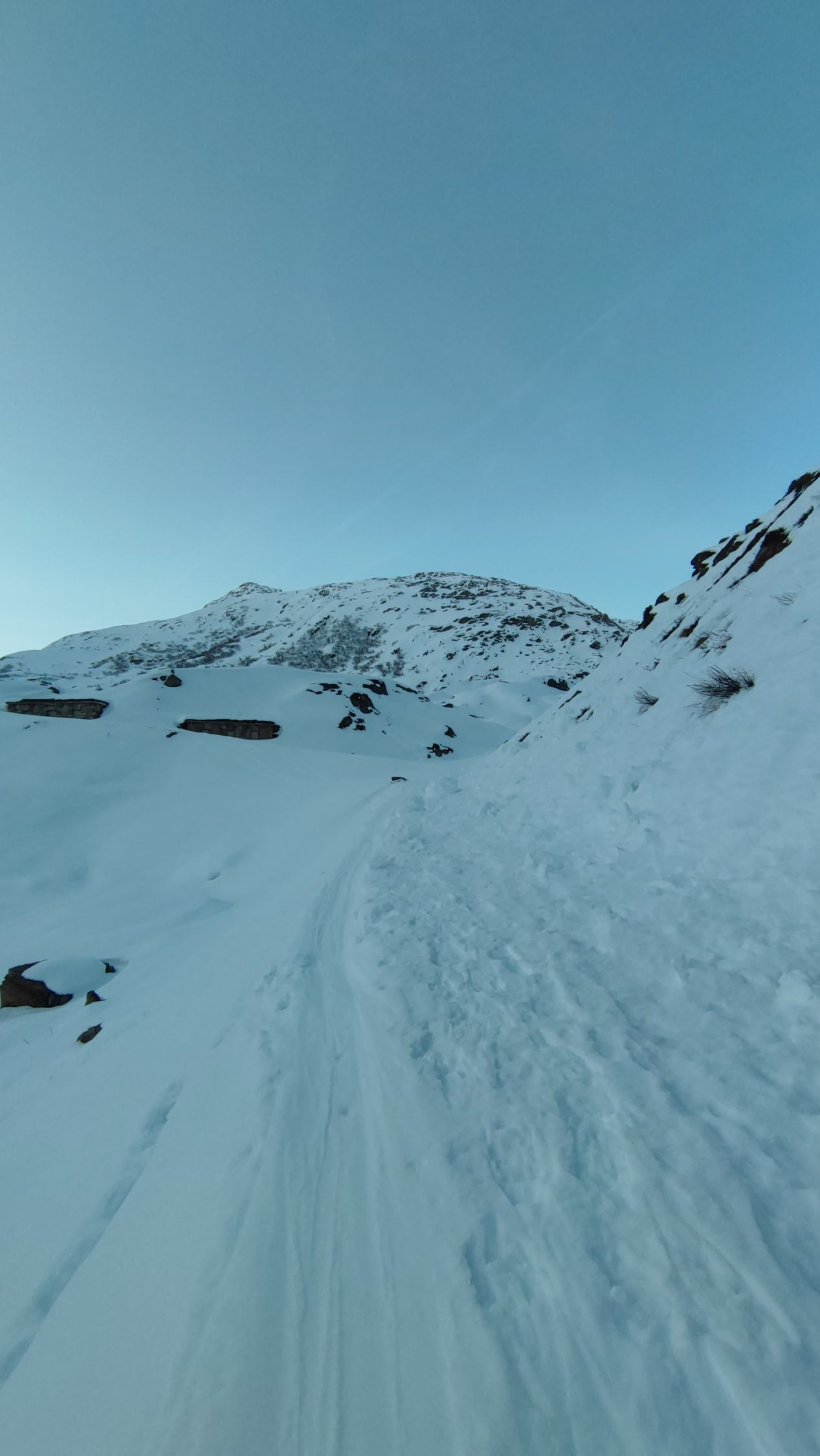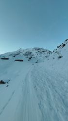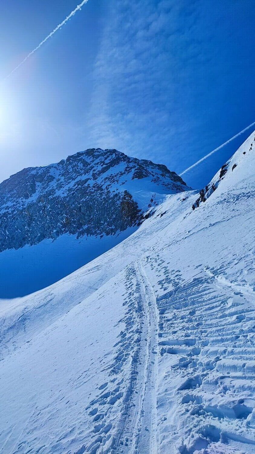 Genügend Schnee ab Dampflokdepo und guter Grip in der Spur. Harscheisen heute vor dem Skidepot nicht nötig, auch Steigeisen für den Gipfelaufbau wären heute nicht zwingend gewesen.
