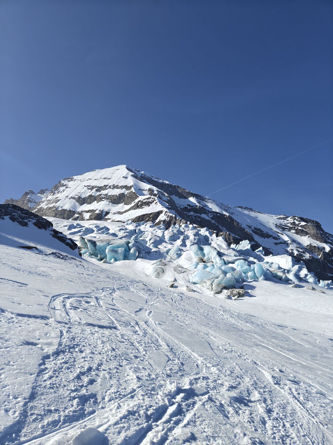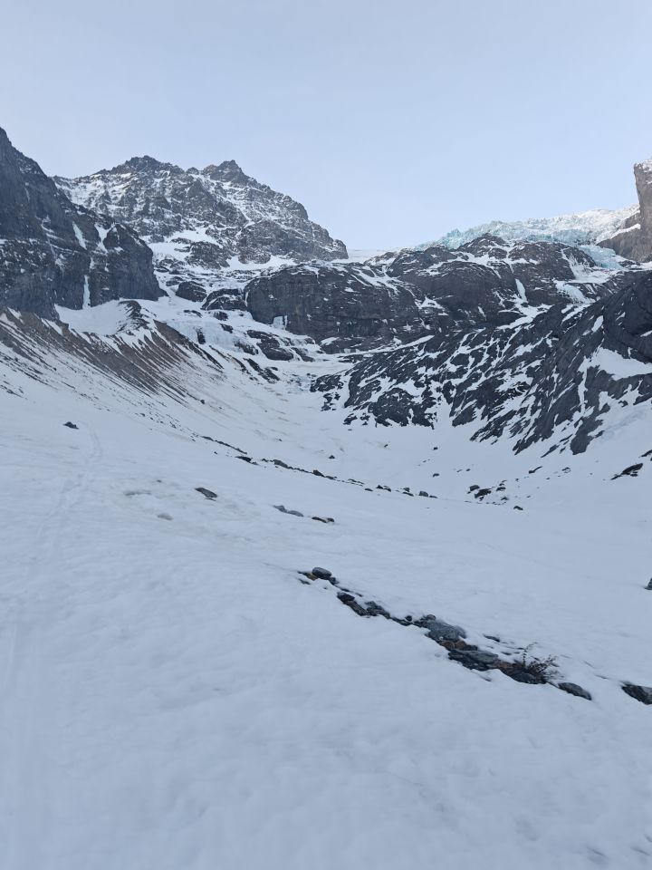 Gletscherbrüche sehr gut passierbar, beim abstieg aber einige Löcher entdeckt.