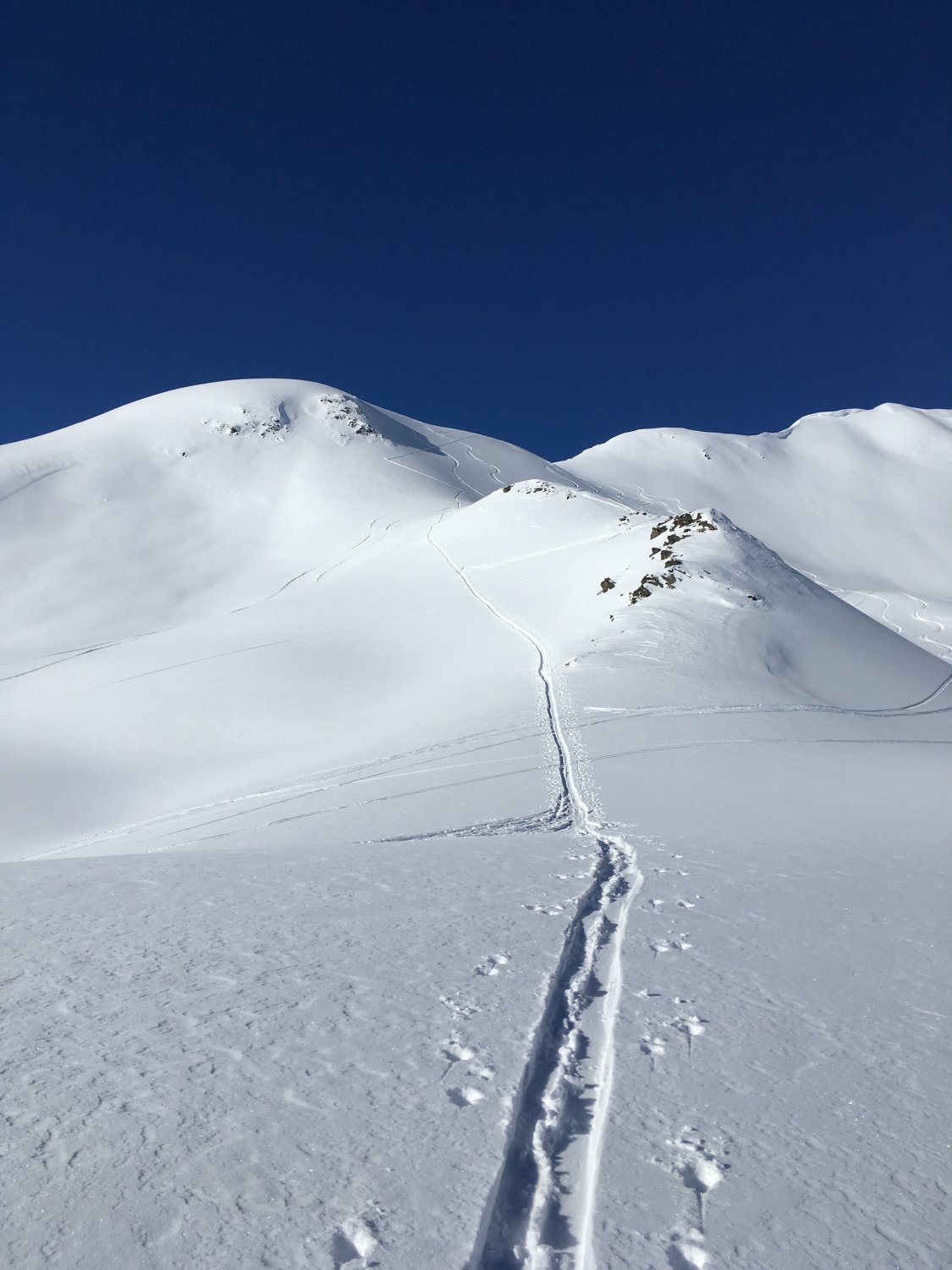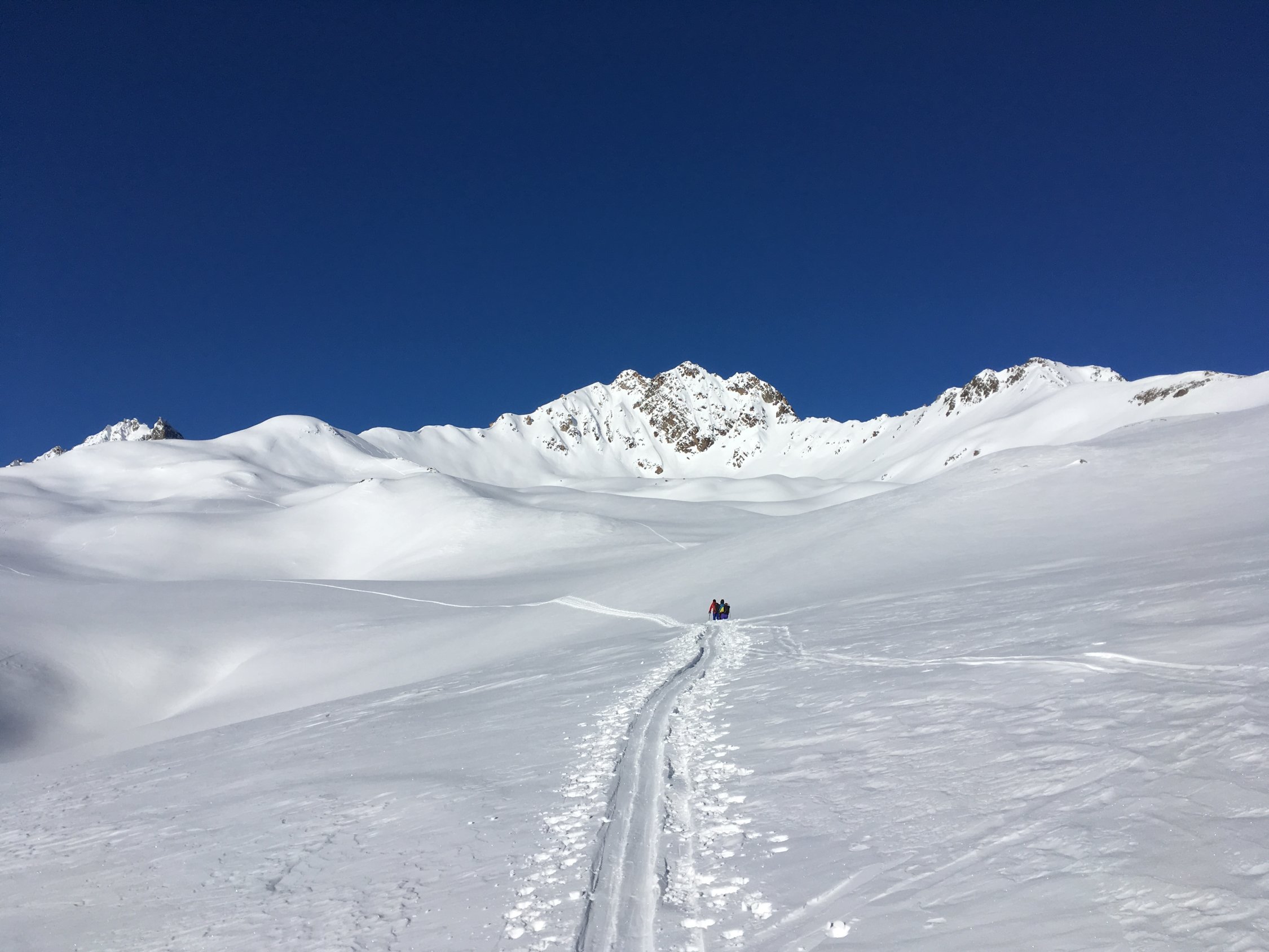 Hammertour mit wenigen Höhenmetern im Aufstieg. Wunderbare Rundsicht zum Piz Kesch 3418 m und auch bis zum Ortler. Bergführer Carlo ist mit einer Gruppe auf den Grat südöstlich P. 2992 aufgestiegen für Abfahrt Richtung Val Viluoch. Danke an Niculin B. für die sportliche Spur auf den Viroula Pitschen.