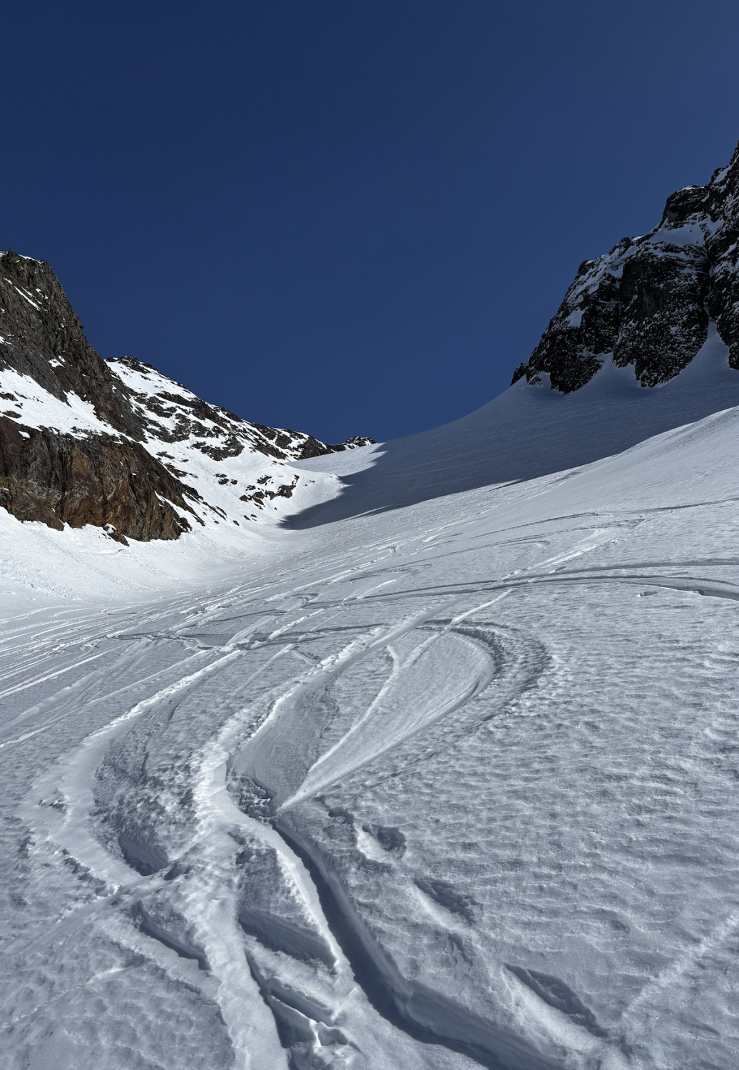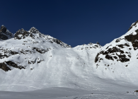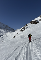 Abfahrt schattseitig über Gletscherrücken zum Teil sehr windverspresster Pulver, nicht ganz ungezwungen zu fahren. ab ca. 2700 m talwärts in den schattigeren Hanglangen recht gut zu fahrender gestzter Pulverschnee. Talauswärts dann eher harschig oder von der Sonne aufgesulzter Schnee. Für den Schnee bei der Abfahrt gibt es ein "gut", insgesamt ein sehr schöner Tourentag, der ein "ausgezeichnet" verdient. (fast windstill und nur wenig durch Saharastaub eingetrübtes Bergpanorama). Videolink folgt noch asap :-)