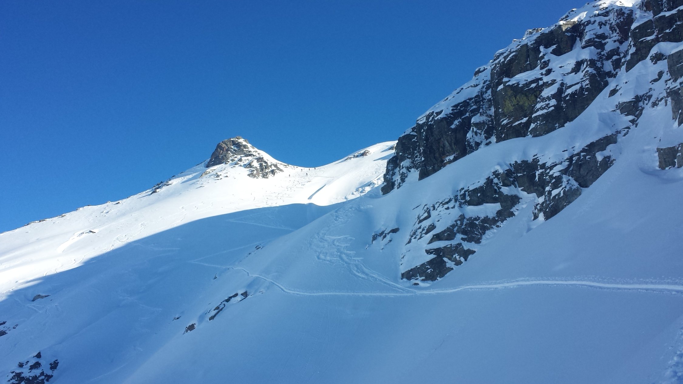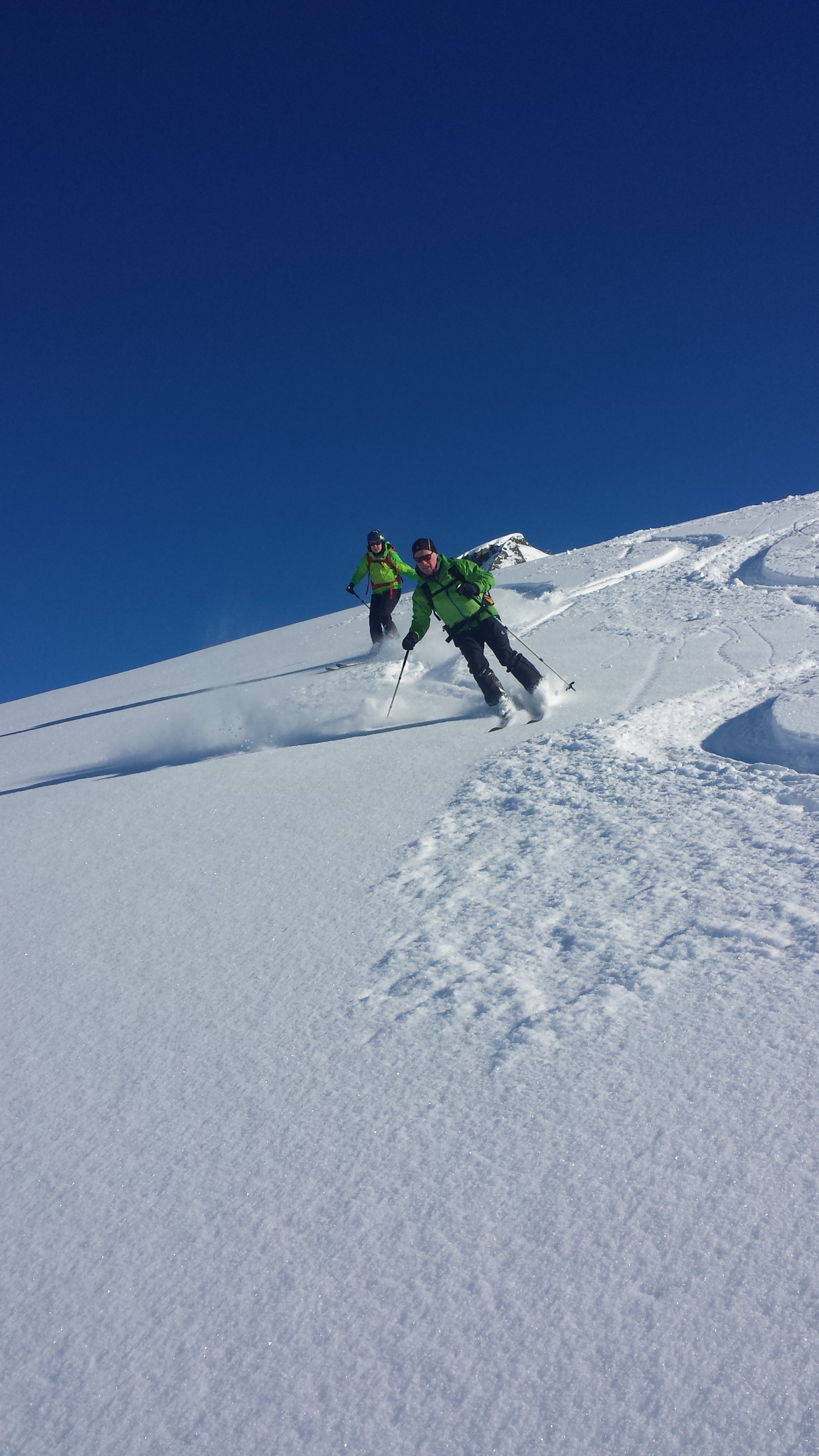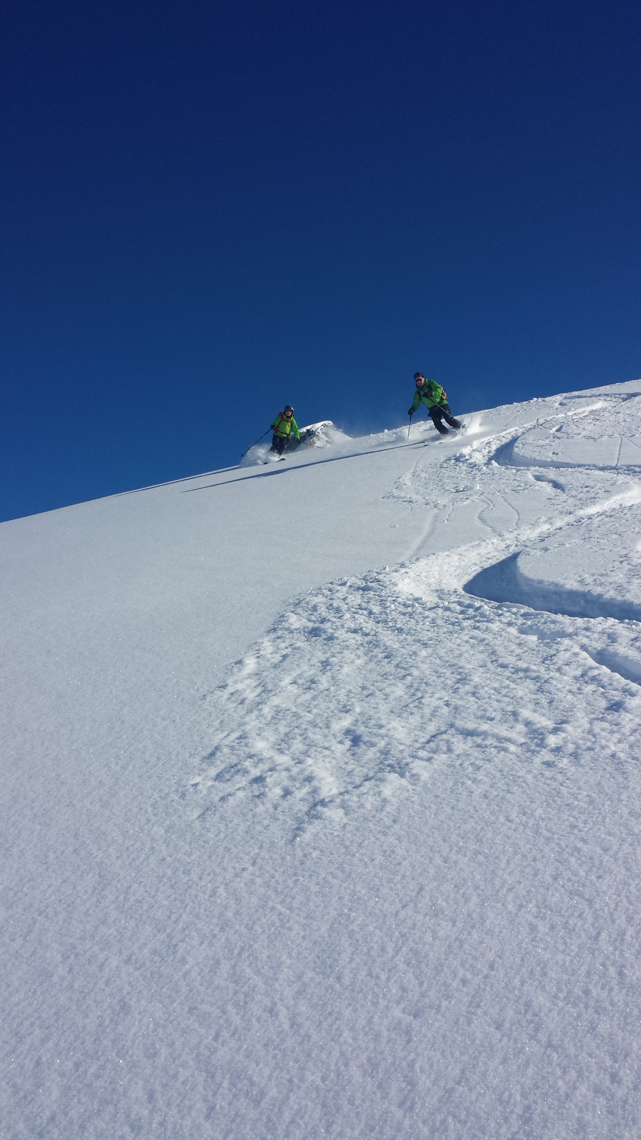 Ein Traumtag in den Bergen. Beim Start in Gargellen -12 Grad. Bis zur Zollwachthütte lag der größte Teil das Anstiegs im Schatten, danach sehr angenehm in der Sonne. Sehr gute Spuranlage in der Querung zum Gipfelhang. Am Gipfel windstill und endlose Fernsicht. Noch wenige Spuren am Berg, aber die Steilrinne nach dem Gipfelhang war schon befahren,ebenso der Nordhang der Schlappiner Spitze. Federleichter Pulverschnee von oben bis unten.