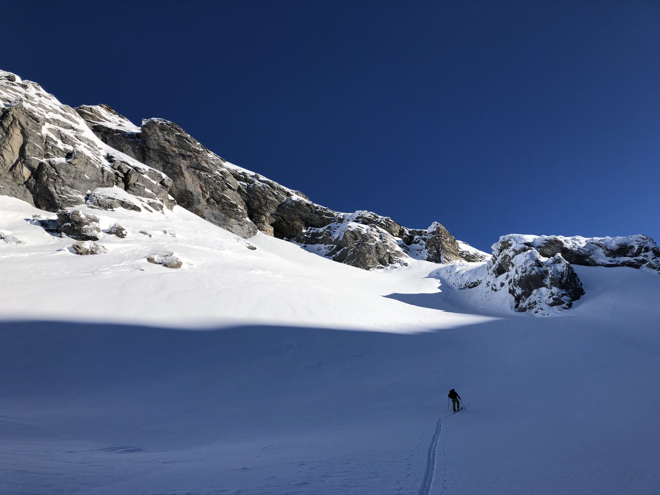 Strasse ins Brunnital ist eine Piste, im hinteren teil Lawinenabgang der aber gut passierbar ist. Aufstieg Nieder Lammerbach nach Alt Richti teilweise mit Skis am Rücken. Aber sehr gut machbar da guter Trittschnee. Danach feste, griffige Unterlage mit wenig Pulver drauf. Sehr angenehmer Aufstieg und zum Abfahren auch super.