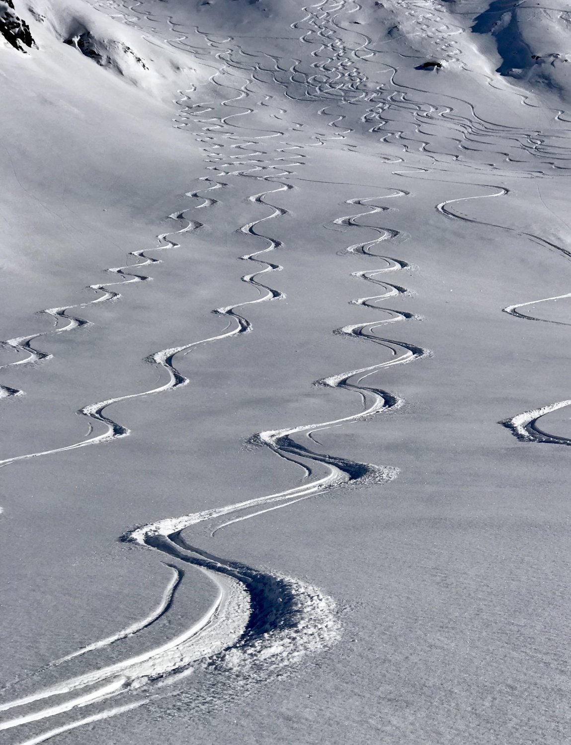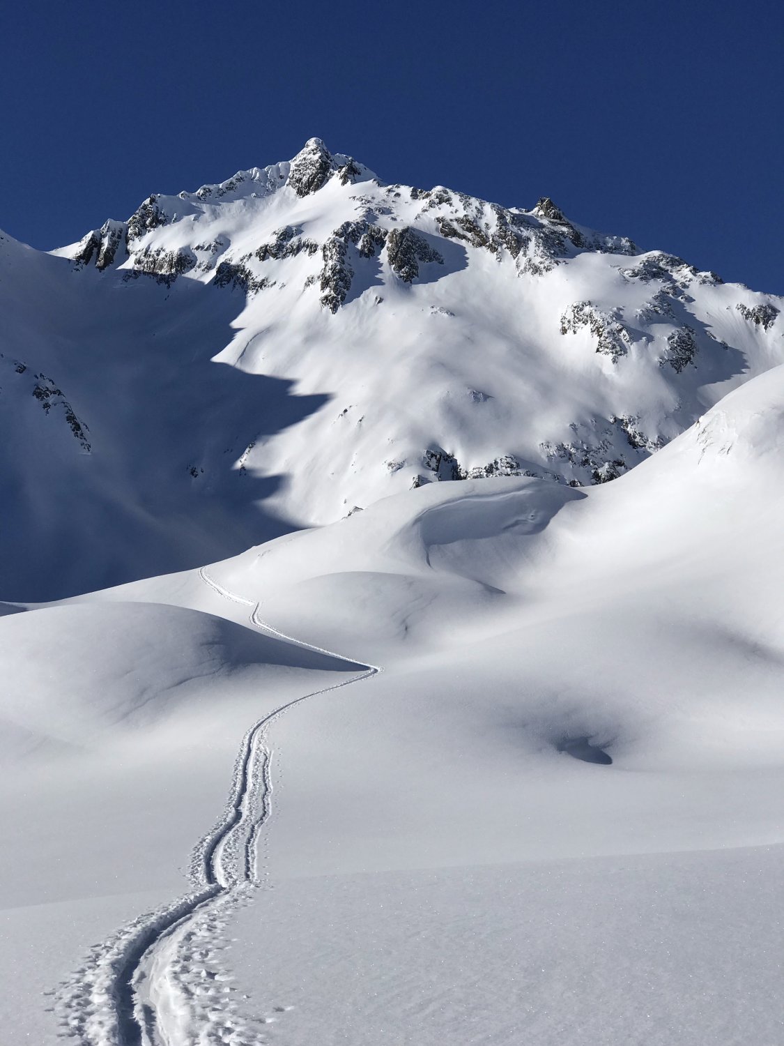 Der perfekte Tag - kalt-schön-Pulver. Schon die Abfahrt von den Maroiköpfen ein Vergnügen, Aufstieg bis zum Depot in feinem Pulver, die Rinne zum Gipfel gut eingeschneit, Hammer Panorama, Abfahrt über das Bettlerkar sensationell schön, der Forstweg nach Langen, na ja, aber gut zu fahren bis zum Bahnhof Langen. Toll: Nicht nur der Bus zurück nach Stuben war mit dem Tourenticket der Albona II abgegolten, auch der Sessellift von Stuben zum Albonagrat war noch inbegriffen, so dass ich über die Piste zurück zur Talstation Altona II fahren konnte.