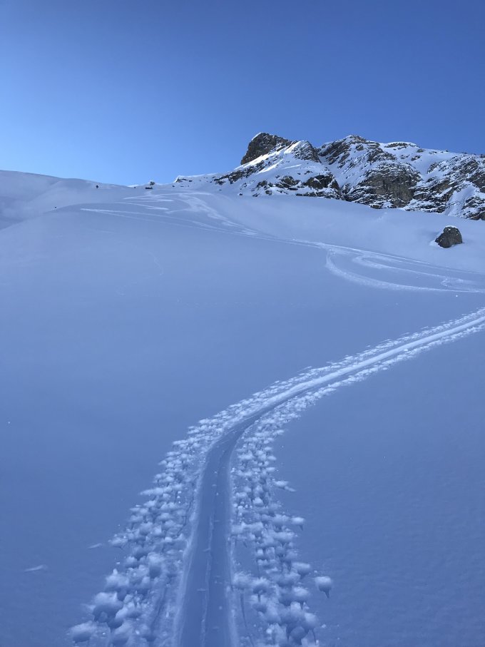 Aufstieg von Tschingel über Giessalp. Strasse nach Griessalp hart aber gut mit Ski fahrbar. Ab Griessalp durch den Wald und auf guter Spur bis zum Gipfel. Super Abfahrt durch den Pulverschnee. Da der Hang vom Hohtürli sehr breit ist, war genügend unversperrtes zur finden. Herrliches Wetter und guter Schnee, ein Traum. Allerdings war es sehr kalt, aber sonnig und windstill auf dem Gipfel.