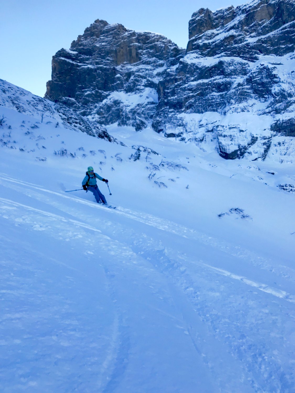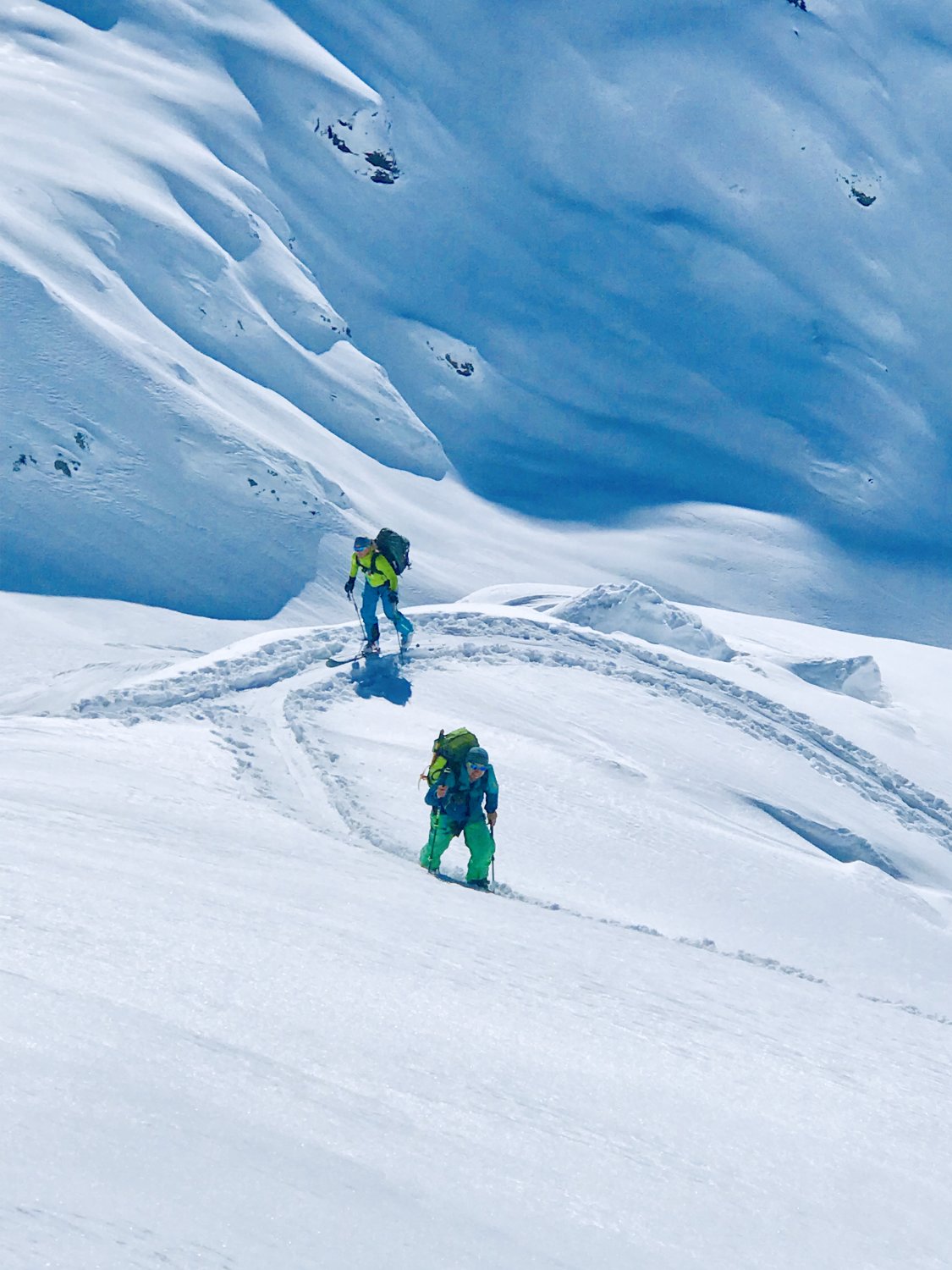 Sehr empfehlenswerte Tour. Gipfel haben wir ausgelassen, dafür haben wir vom Wendengletscher auf Schwarze Berg unsere first-lines reingepulvert.