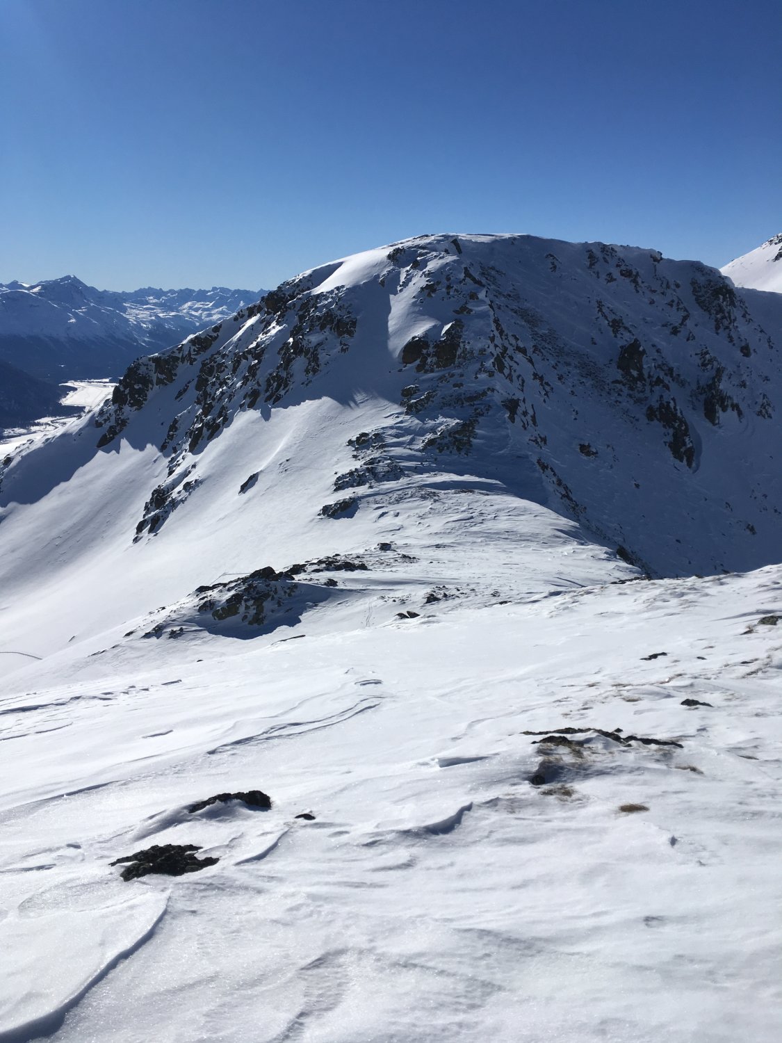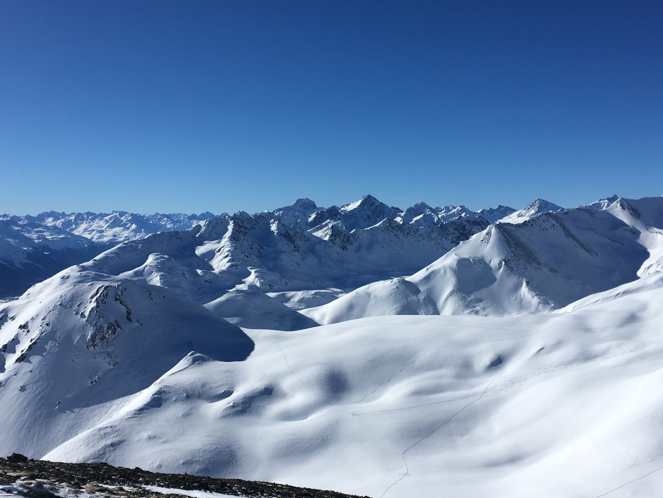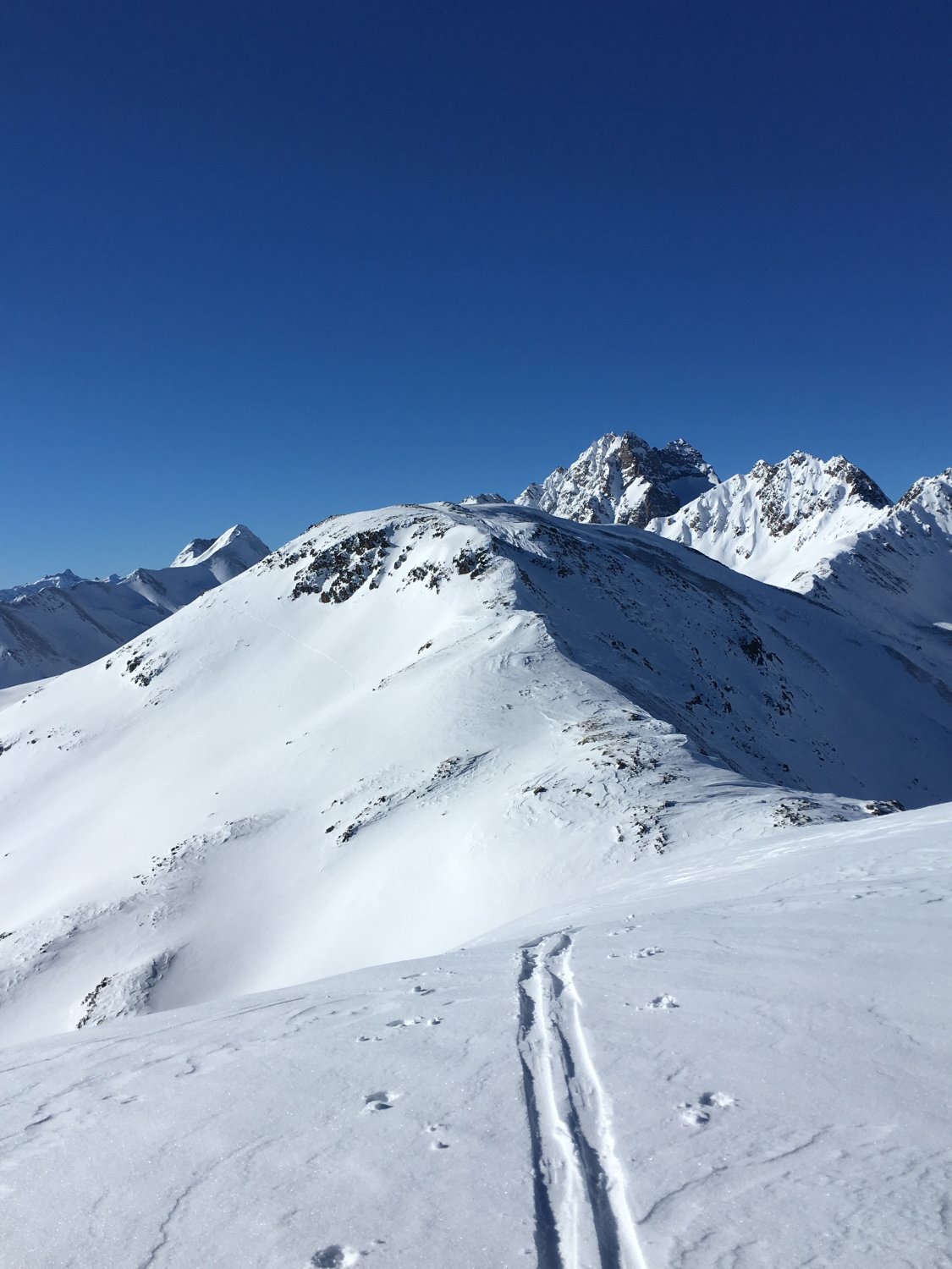Einmalige und einsame Tour mit wenigen Höhenmetern im Aufstieg und mit 1200 Meter Abfahrt. Kann ich nur empfehlen. Man kann die Tour auch abkürzen, ohne die beiden Gipfel Pizzet und Botta Cuolm zu machen, einfach direkt traversieren zum Piz Griatschouls.