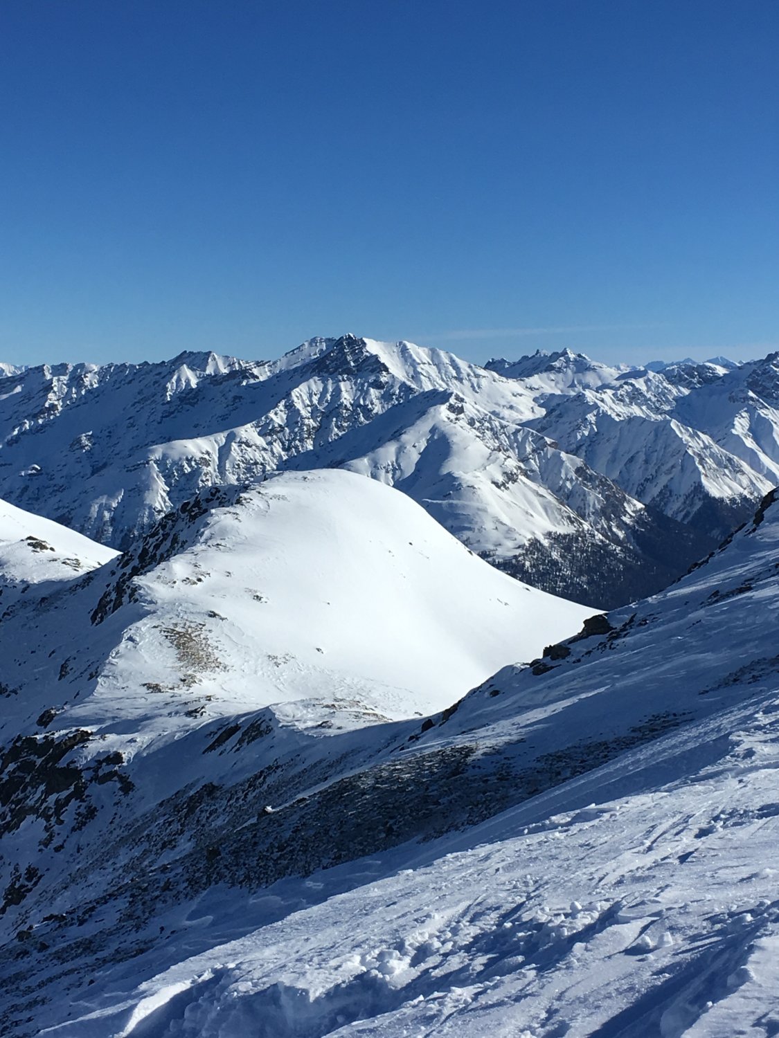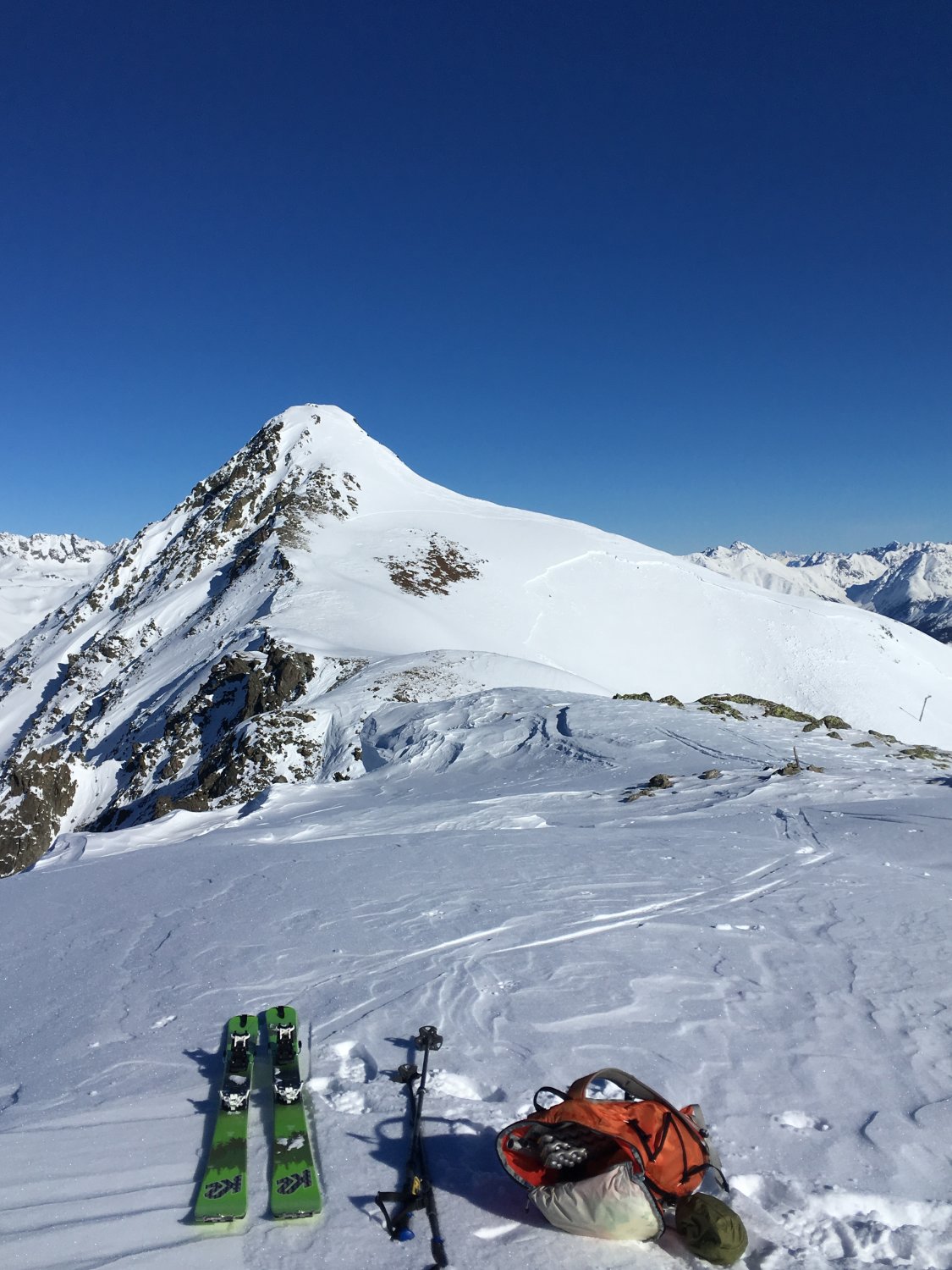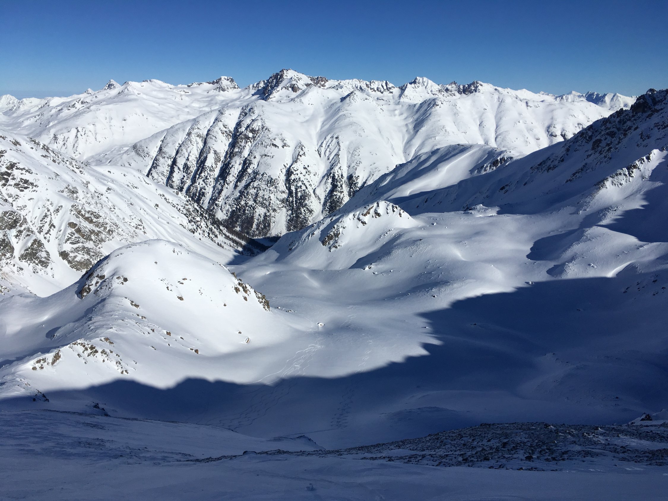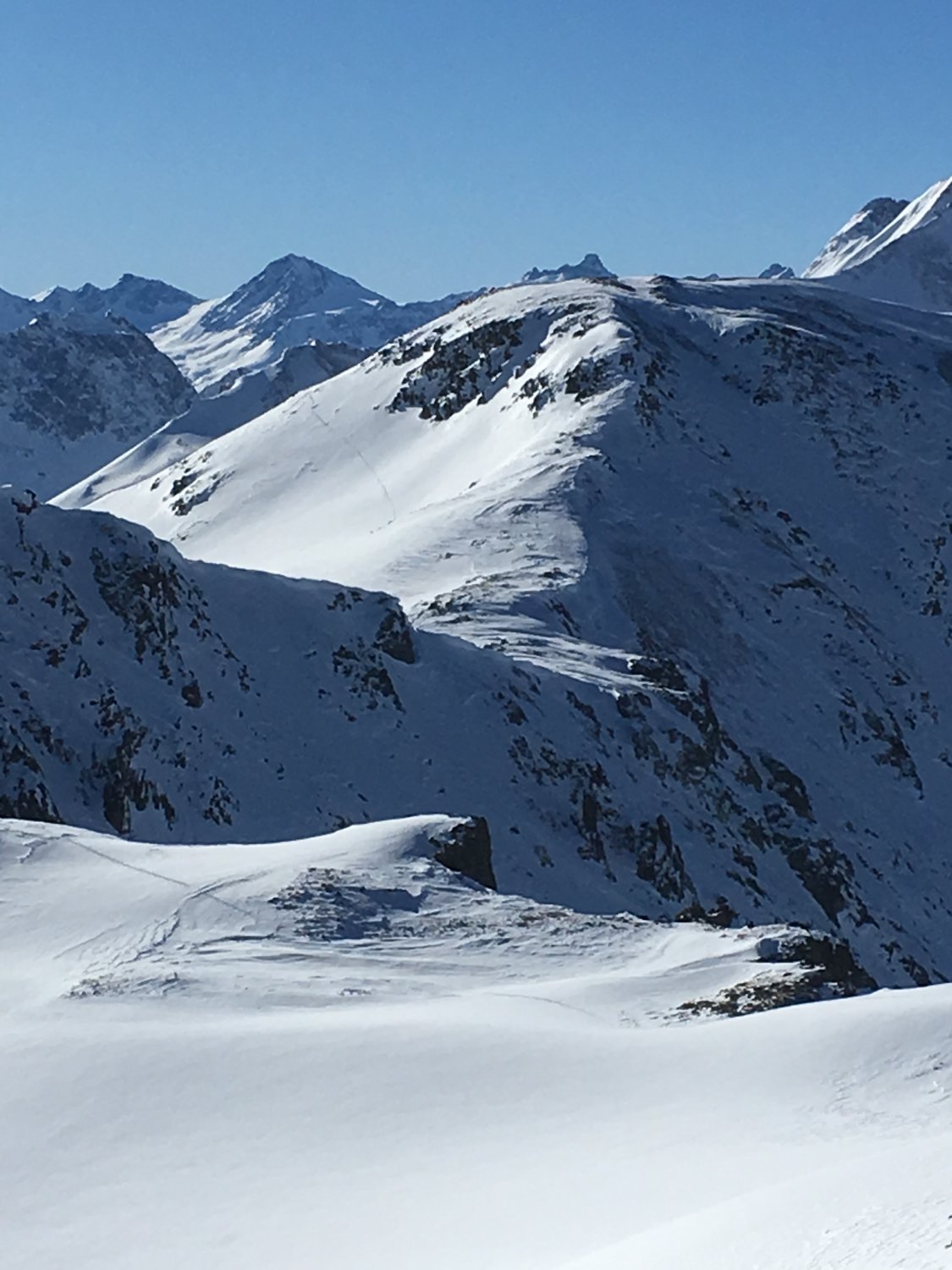Einmalige und einsame Tour mit wenigen Höhenmetern im Aufstieg und mit 1200 Meter Abfahrt. Kann ich nur empfehlen. Man kann die Tour auch abkürzen, ohne die beiden Gipfel Pizzet und Botta Cuolm zu machen, einfach direkt traversieren zum Piz Griatschouls.