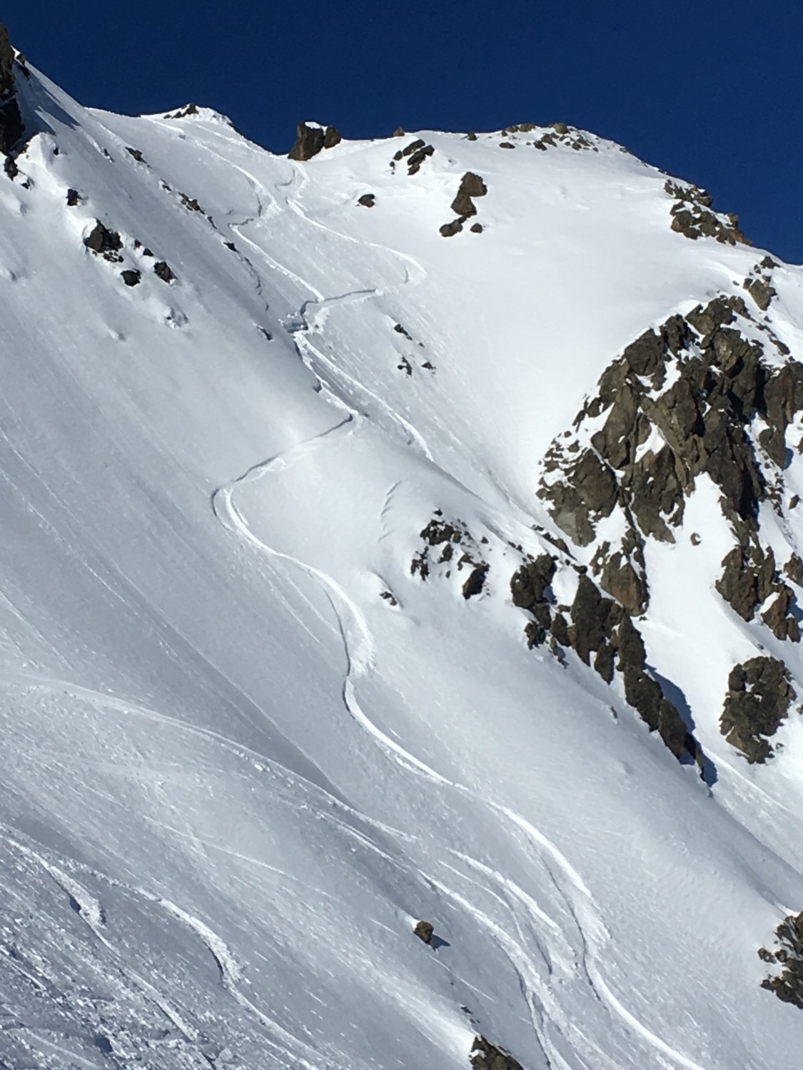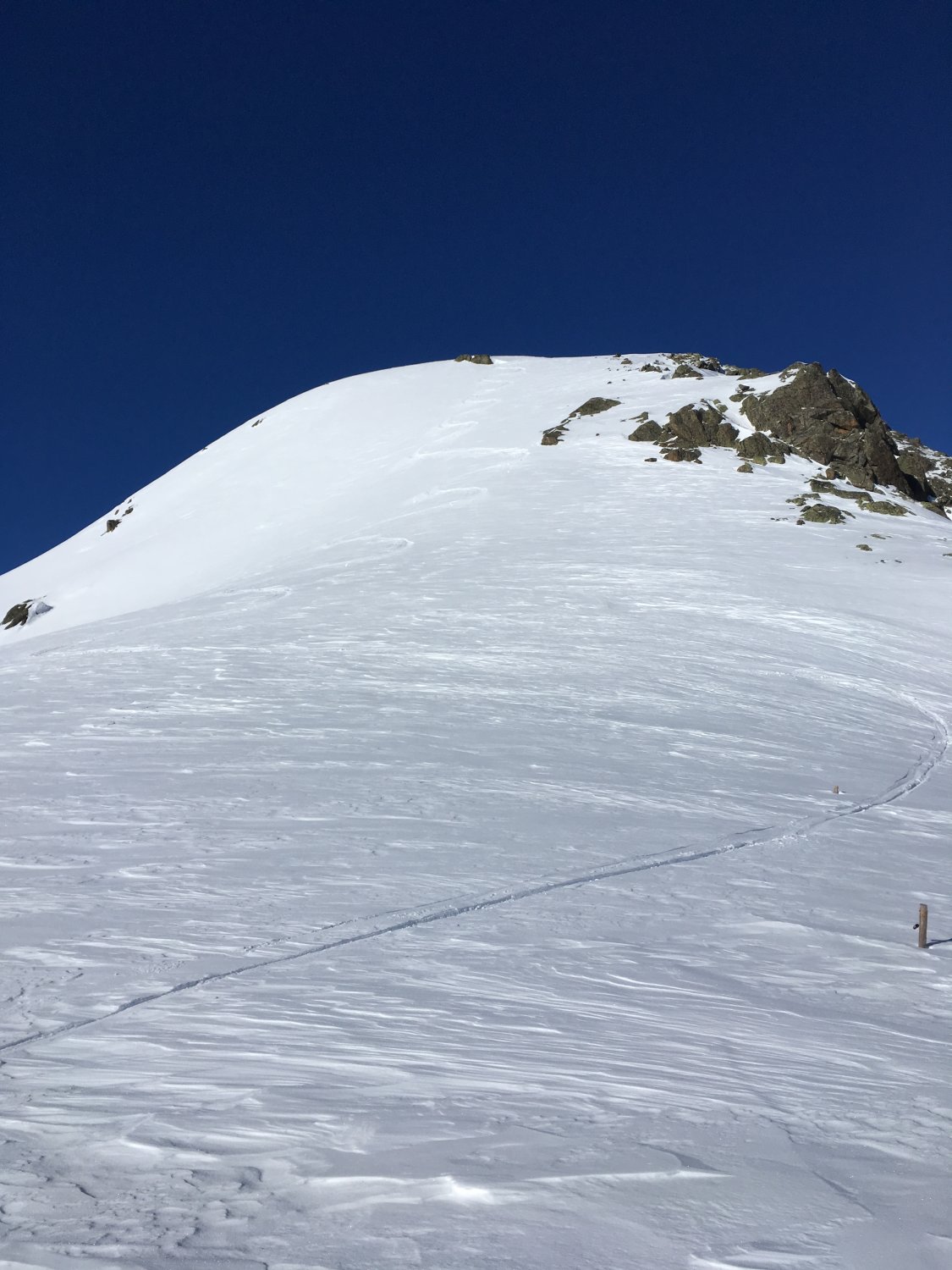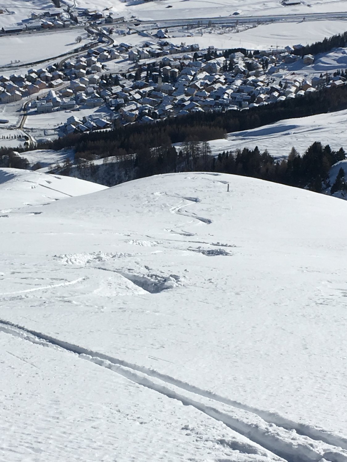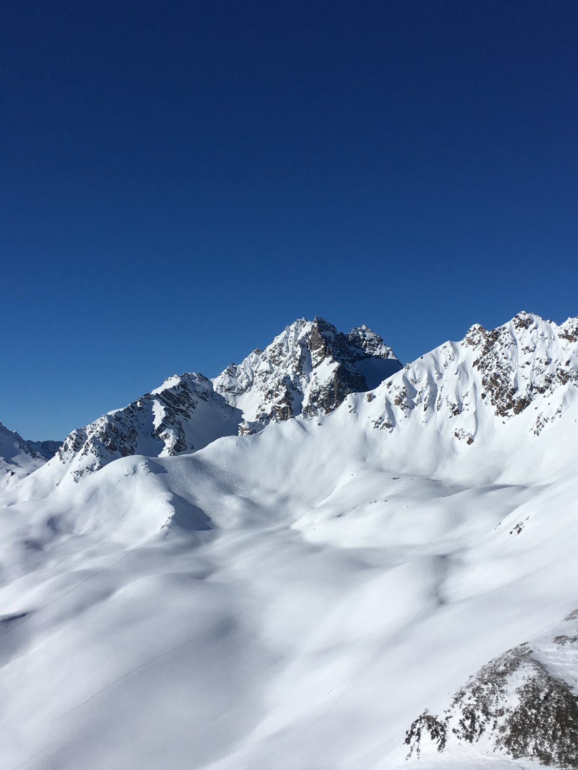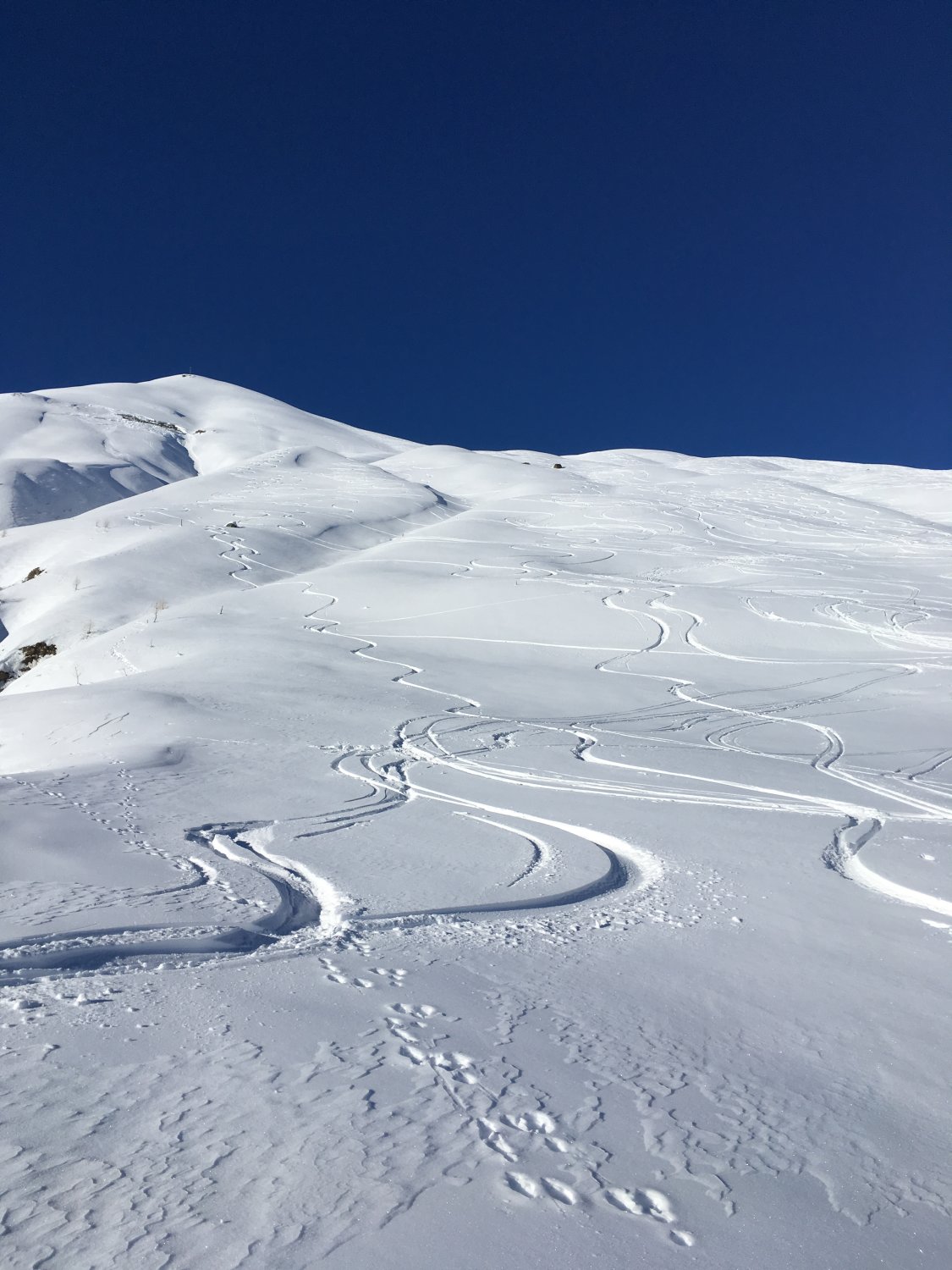 Start um 9 Uhr Talstation Sessellift Chastlatsch / Pizzet mit Tourenkarte CHF 26.00. Minus 22 Grad, windstill. Bis Pizzet gute Spur vorhanden, die letzten 30 Höhenmeter zu Fuss, Dann bin ich vom Gipfel wieder auf Aufstiegsroute abgefahren und habe die Ostflanke traversiert. Weiter zu P. 2808 und unschwierig auf den breiten Gipfel. Nun bin ich den Südhang abgefahren und Wiederaufstieg mit Felle zu P. 2798 und P. 2838, habe die Möglichkeit für Gratabfahrt nicht sehen können. Weiter so hoch wie möglich zu Bergfuss Aufstiegsroute Piz Griatschouls. Abfahrt nach Zuoz, perfekter Pulverschnee, es hat immer noch genügend Platz für eigene Spuren. Ab P. 2563 bin ich die Flanke westlich abgefahren, Funtanuvas. Tolle Verhältnisse. Erst die letzten 150 Höhenmeter ware der Schnee durch die Sonne leicht gedeckelt.