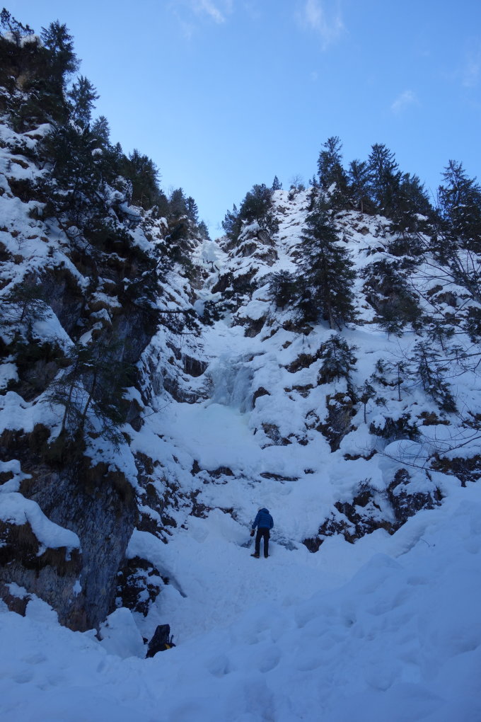 Wenig Eis, Wasser läuft und nicht gut absicherbar.