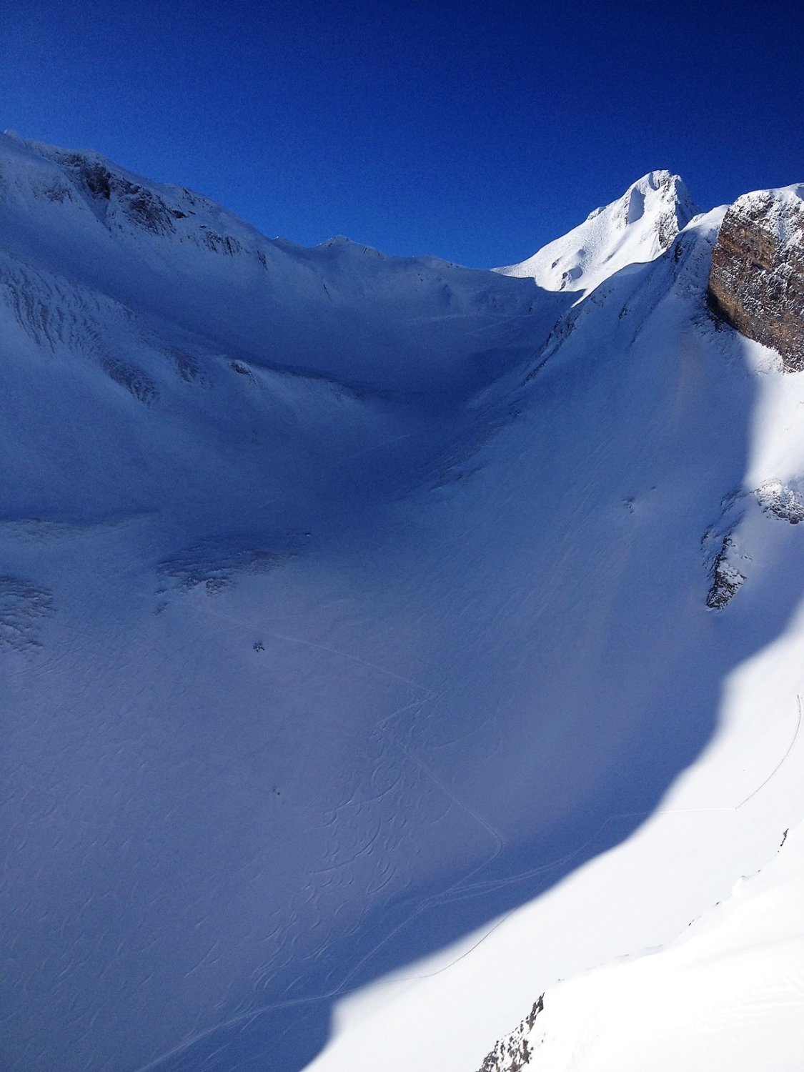 Abfahrt im Pulverschnee zurück zur Klewenalp. Zwar zum Teil stark zerfahren, aber mit ein wenig Gespür sind immer noch schöne Hänge zu finden.