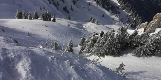 Bis zur oberen Socheralpe ist gewalzt. Ab dort gut gespurt bis zum Gipfel. Vom Tal bis zum Gipfel ca. 5-10cm Neuschnee. Die Unterlage ist sehr zerfahren. Zum runterfetzen ist es dennoch genial. Auf dem Gipfel gab es starken, bissigen und sehr sehr kalten Wind.