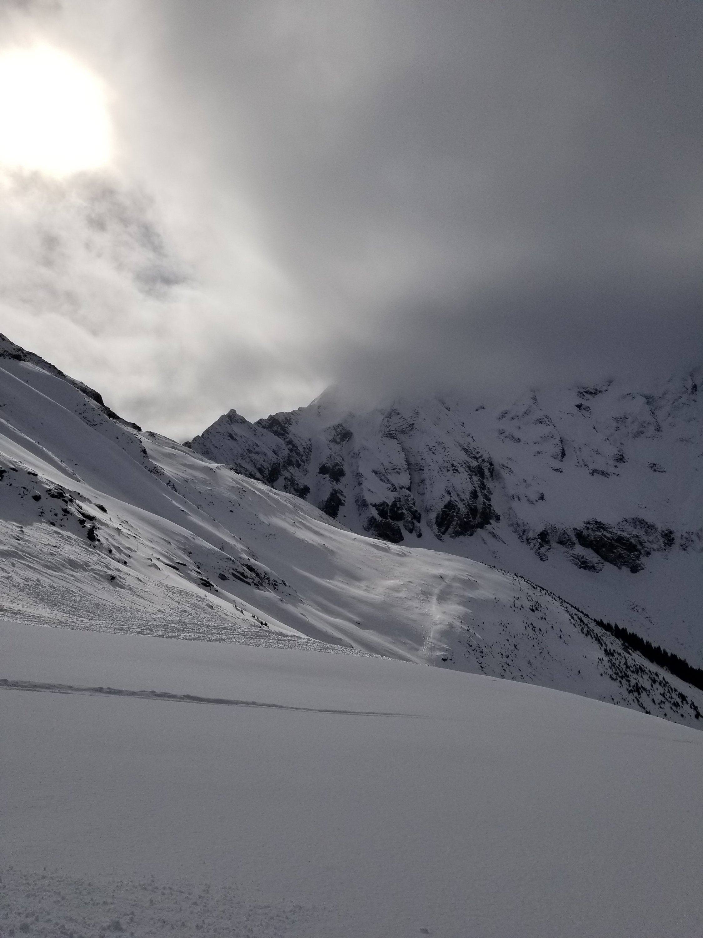 In den ganz steilen Hängen gingen einige Rutsche ab. Siehe Bild.