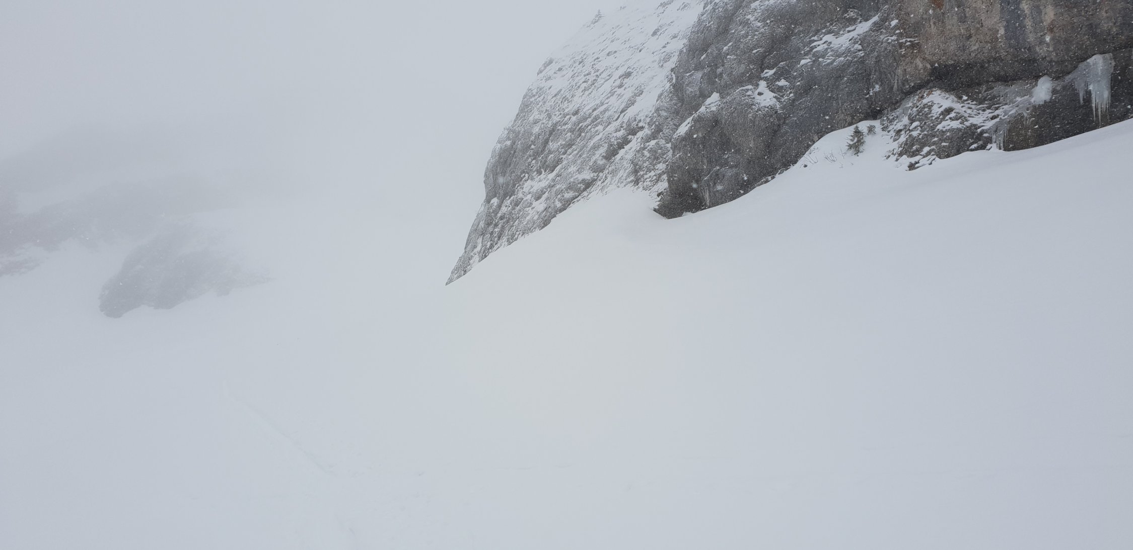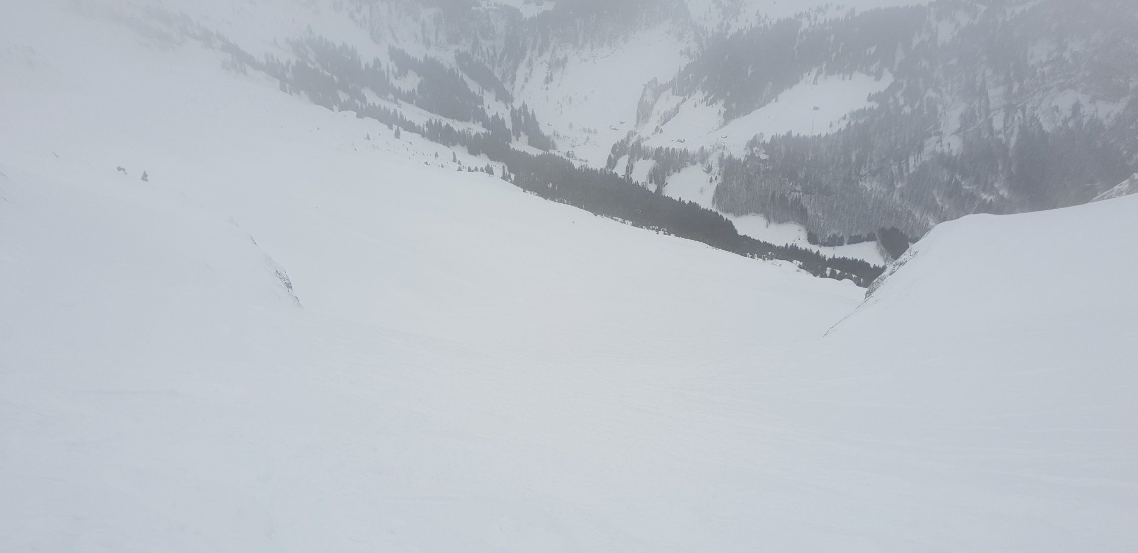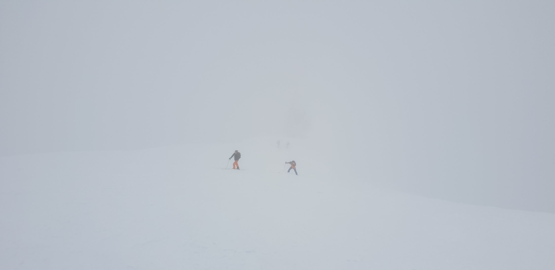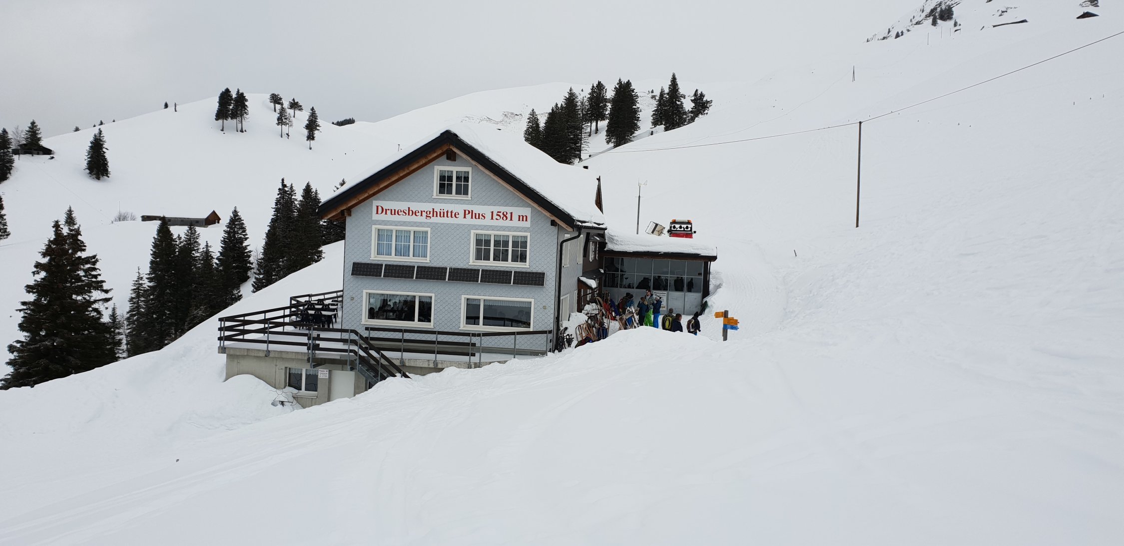 Start der Tour am 10.30 Uhr, die Temperatur +1 Grad, schon nach kurzer Zeit bildeten sich die ersten Stöllen, mit den Ersatz Fellen ging es wieder weiter zum Steinhüttli, bei der Querung zum Rossstelli wurde das Wetter wieder schlechter, die vielen Spitzkehren durch das Couloir waren gut zum hochsteigen,leider war der Schlussteil voll im Nebel, man musste sich heute mit dem Wintergipfel begnügen, der Hauptgipfel wäre noch 2 Meter höher. Bei der Abfahrt immer noch viel Pulverschnee vorgefunden, nach kurzem Abstecher zur Druesberghütte gings entlang der Schlittelpiste zurück zur Weglosen.