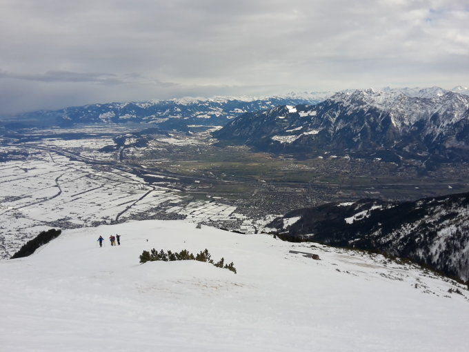 Start um 9 Uhr in Grabs bei recht warmen Temperaturen, trotzdem noch genug Schnee (wer im untersten Teil aggressiv carved wird aber wohl Dreck an den Stoppern einfangen...). Spur gut. Boxenstopp im Bützen und dann weiter über Cher zum Gipfel. Abfahrt angenehm, oben gibts noch Pulver, ab Bir wird der Schnee dann schwerer, bleibt aber gut fahrbar (besser als im Regen vor 2 Wochen), Abfahrt über Prestenegg machbar bis Logner.