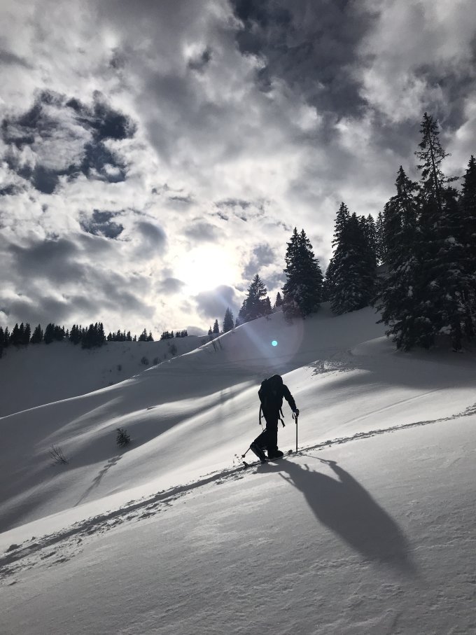 Super Verhältnisse heute morgen...und mit dem Föhn auch noch super Sicht und Sonne. Es war aber sehr mild. In den südlichen Exposition dürfte man jetzt meißt einen Deckel vorfinden. In westlichen Expositionen meißt windgebändert und Press. Aus diesem Grund ist die Tour Top, denn in Sektor Ost und Nord ist überall noch Pulver und super Bedingungen. Alle Touren im gebiet sind gut eingespurt. Achtung ist im Gipfelhang (noch nicht entladen, große Gleitschneeanrisse) und am Gipfelgrat (stark überwechtet) geboten. Ansonsten Top!