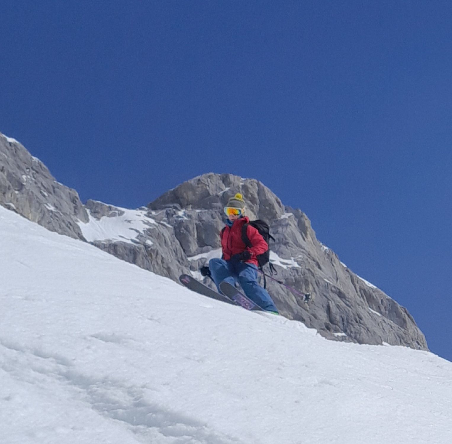 butterweicher firn von oben bis unten. nur wenige passagen mit störenden lawinenbollern. die optimale abfahrtszeit war heute zwischen 10 und 11 uhr.