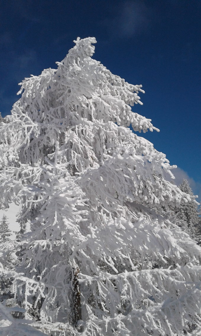 Schnee südseitig jetzt schon schwerer. Der ganze Berg ist mittlerweile stark verfahren.