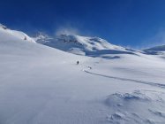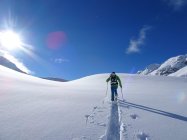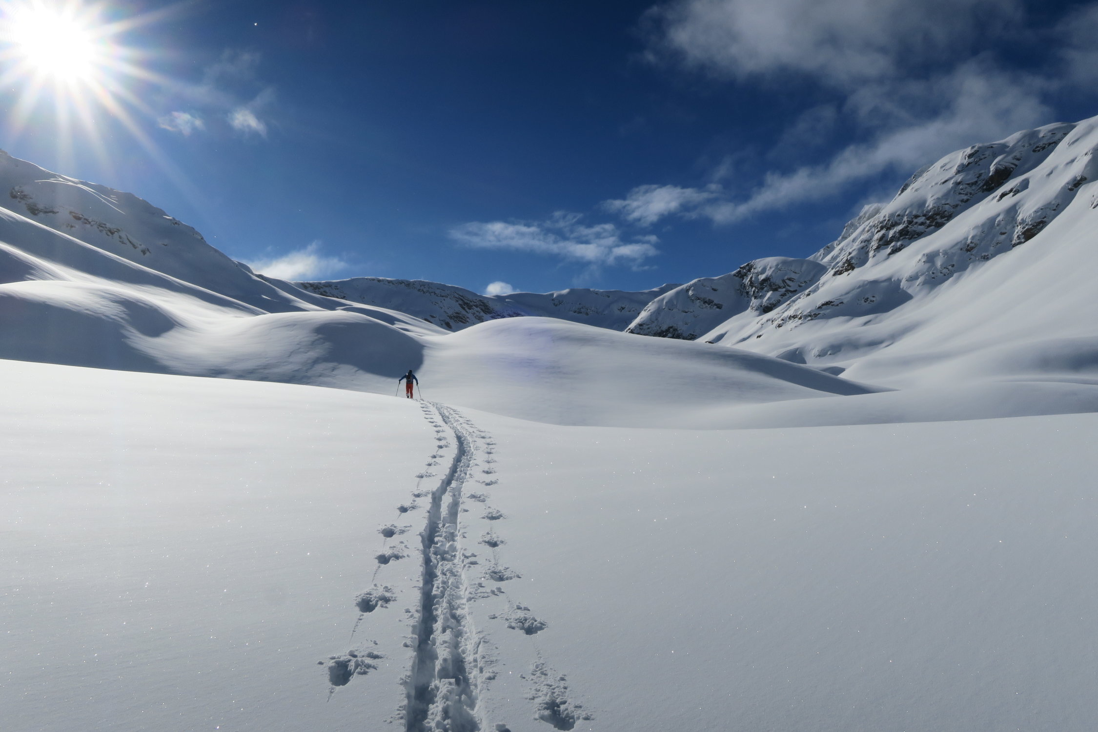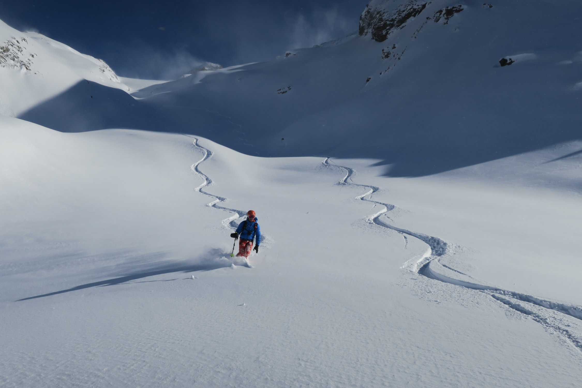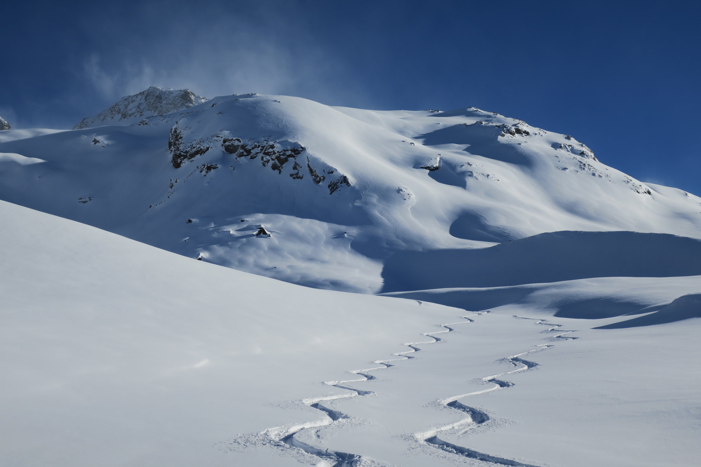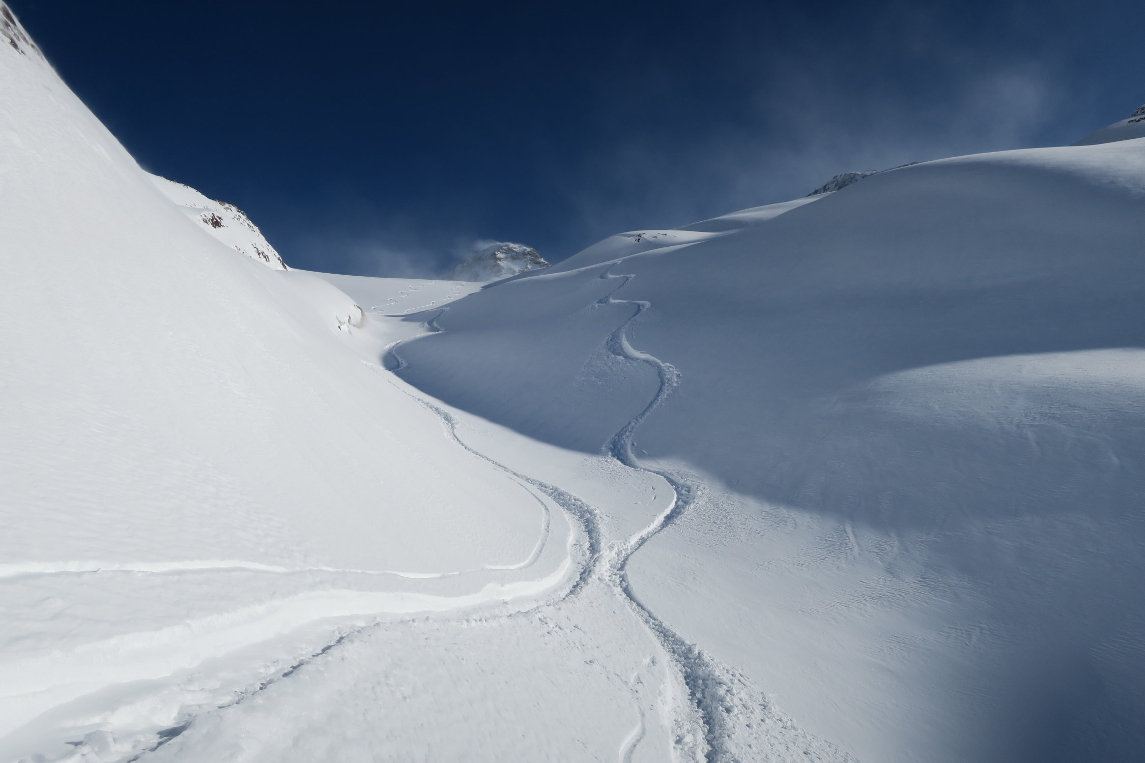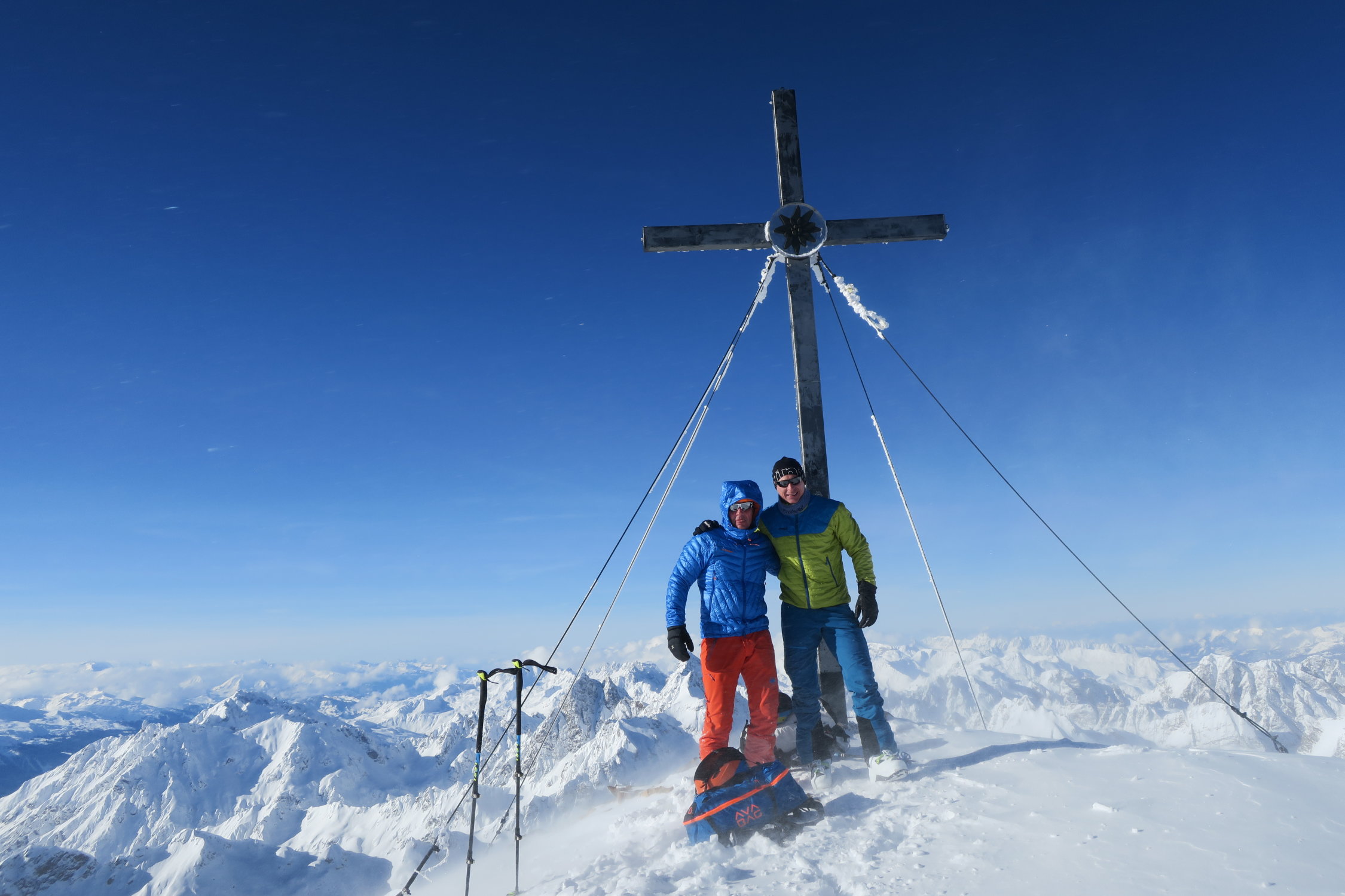Weiterer Aufstieg zur Klostertaler Hütte und direkt über den Gletscher hoch - Wetter zuerst noch bedeckt dann gleich mal Sonne satt. Wir waren den ganzen Tag komplett allein und spurten alles. Schneeglocke heute ziemlich anspruchsvoll. Letzter Hang viel Triebschnee und oben sehr rutschig beim Grat/Steine. Am Gipfel eisiger Wind. Abfahrt ein Traum. Verpassten dann den letzten Bus und fuhren daher durch die Höll nach Partennen ab. Pulverschnee bis ins Tal - 1.600 Höhenmeter Aufwärts - ca 2.600 Abwärts Gesamt und 28 Kilometer.