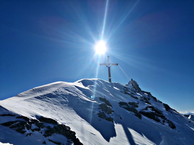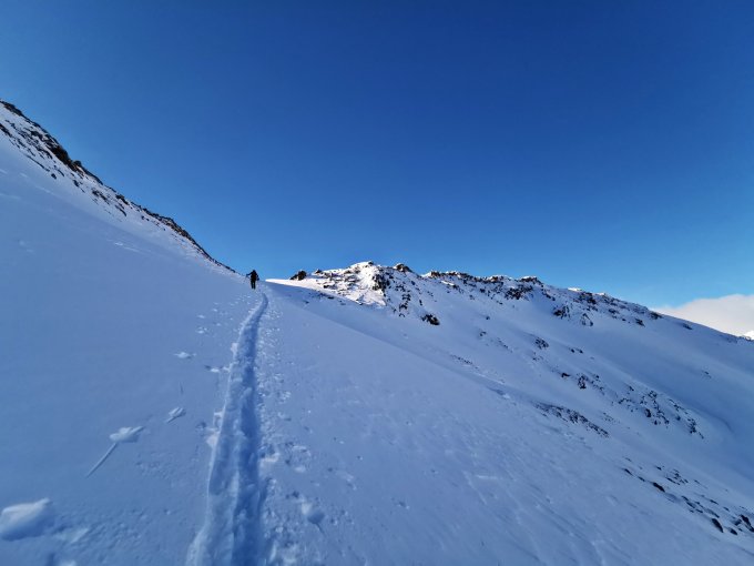 Kleinere Triebschneepakete die man allerdings recht gut erkennt. Ansonsten Traumhafter Pulver. Der Gipfelanstieg ist teilweise etwas Überwächtet und teilweise Bock Hart. Steigeisen könnten von Vorteil sein.