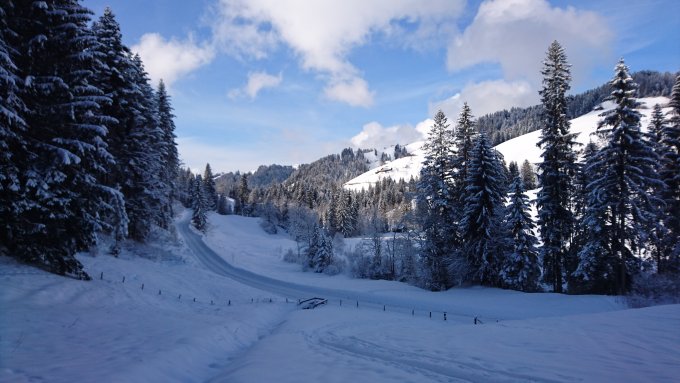 Auf der ganzen Route hat es etwa 20 bis 30cm Pulverschnee. Im oberen Bereich hatte es darunter einen dünnen Deckel der nicht Tragfähig ist, vorallem an SW bis W exponierten Hängen. Die Hänge mit NW Exposition waren traumhaft zu fahren.