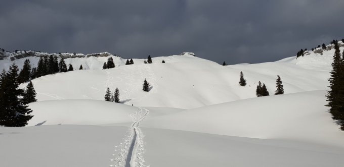 Pulver mit ganz leichtem Deckel unten aber noch gut zu fahren. Nachmittags gestartet und alleine um 15.00 Uhr oben.