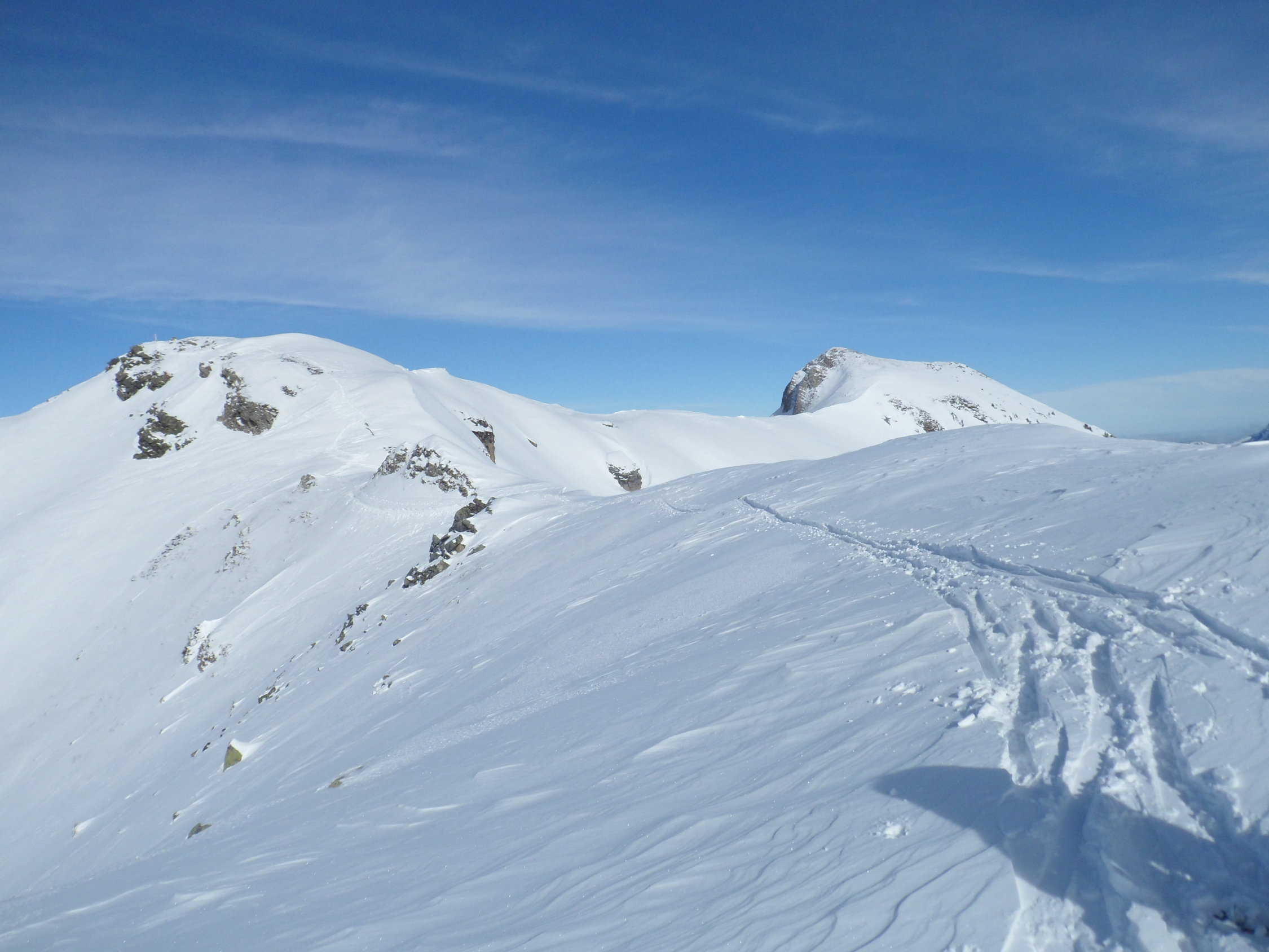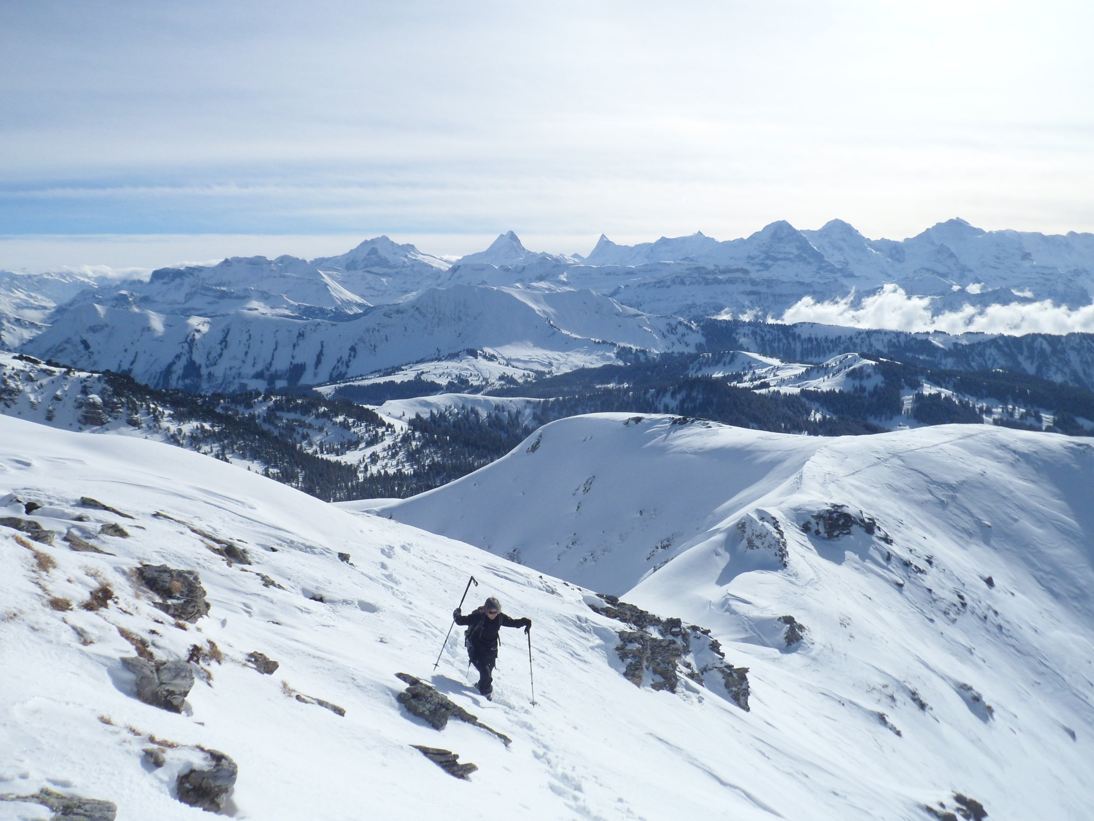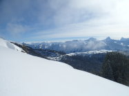 Es soll ja noch mehr Schnee geben. Abfahrtsmässig ist die Tour derzeit nicht sehr interessant. Fast zu viel Schnee. Aber die Aussicht ins Mittelland und in die Berner Alpen ist phänomenal