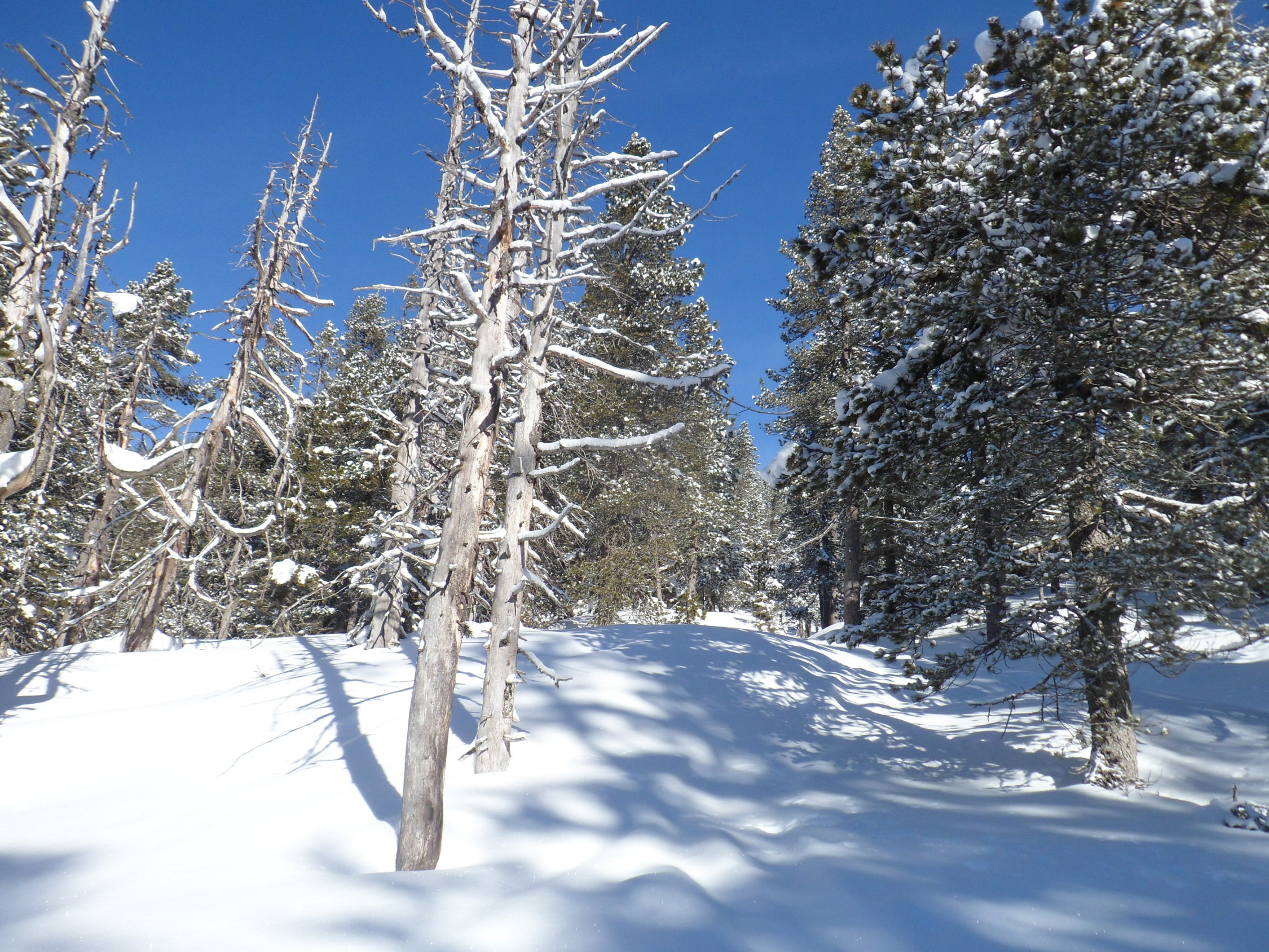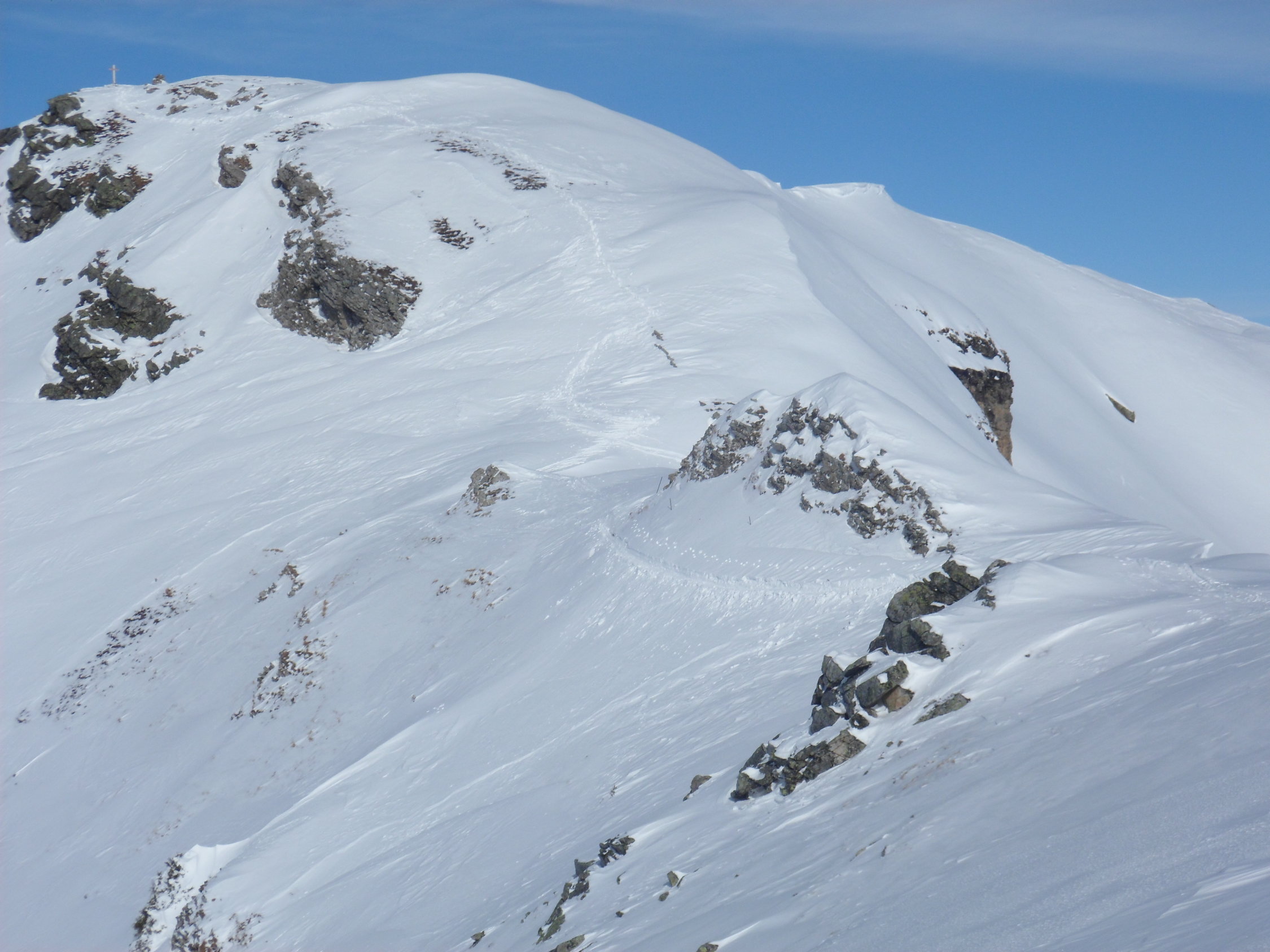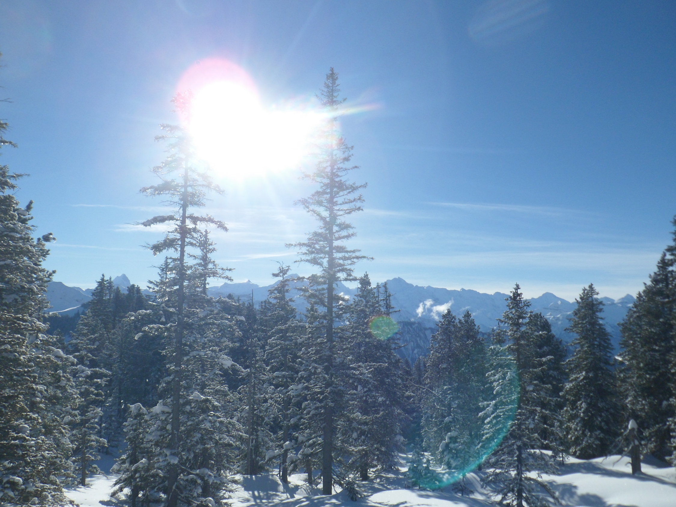 Wunderbarer Pulver, bei der Abfahr schon etwas schwer, mussten viel in der Aufstiegsspur fahren um vorwaerts zu kommen.