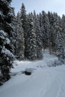 Descente un peu avant 15h: Bonne neige mais visibilité médiocre dans la pente sommitale, très difficile de distinguer le relief, même les anciennes traces sont difficiles à deviner. Ca s'arrange un peu sous le col: meilleure visibilité, neige poudreuse un peu lourde agréable à skier. Ensuite chemin forestier pisté jusqu'au parking, rigolo.