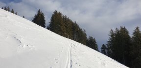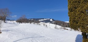 Bei der Anfahrt noch letzte Regentropfen, Start der am 8.45 Uhr bei +2 Grad, die Schneedecke war unten sehr kompakt, das Wetter wurde rasch besser, schon bald zeigte sich die Sonne, oben dann noch etwas Pulverschnee mit der schon wieder zu Stöllen führte.