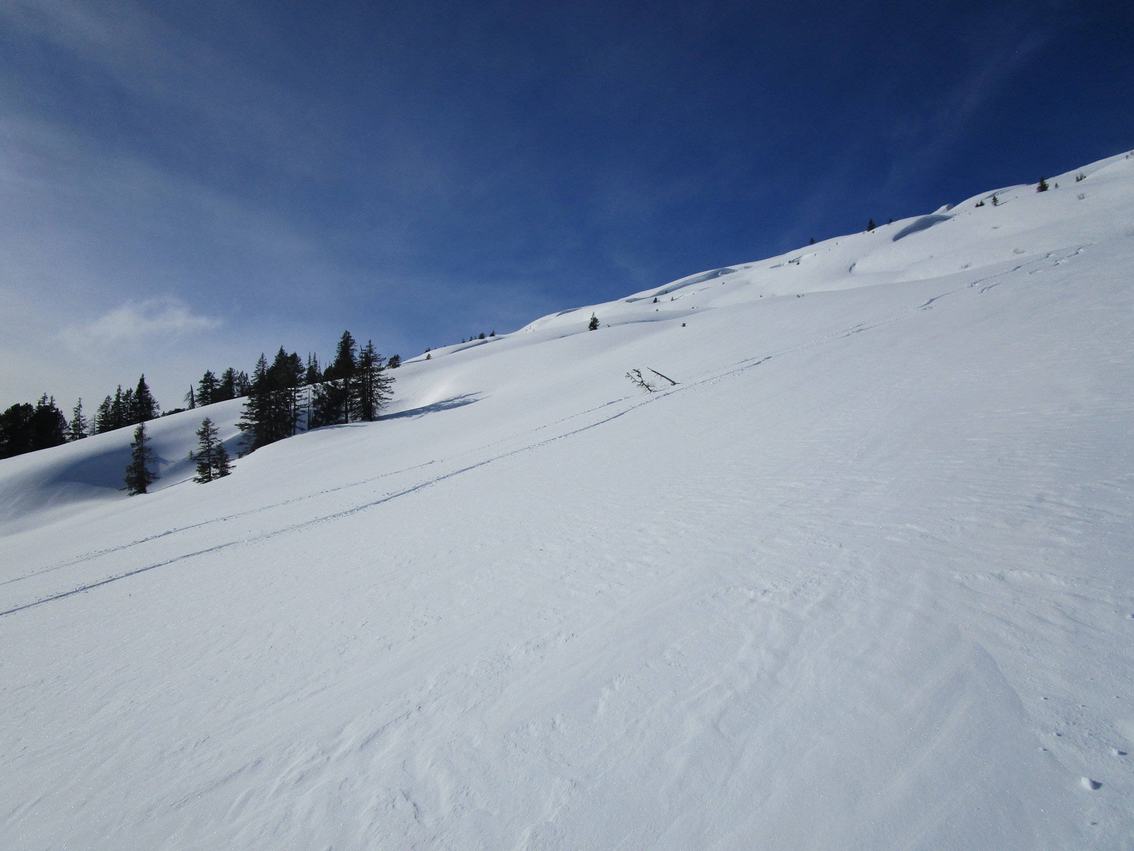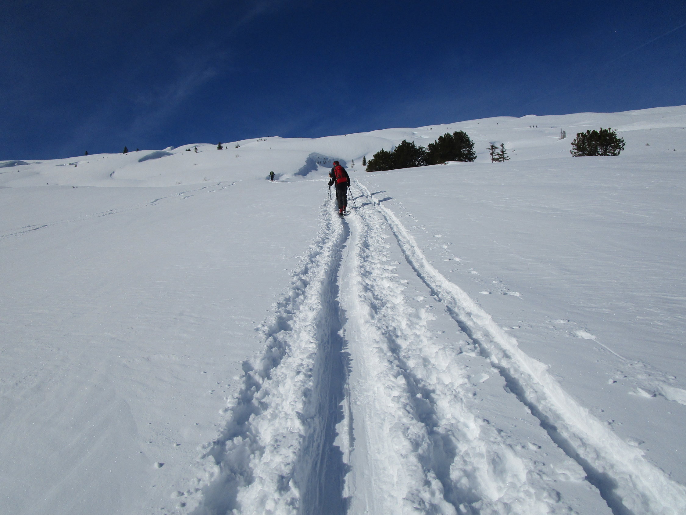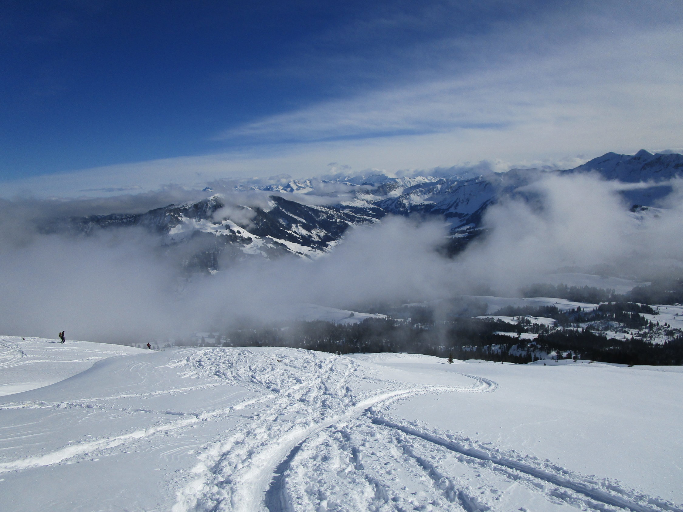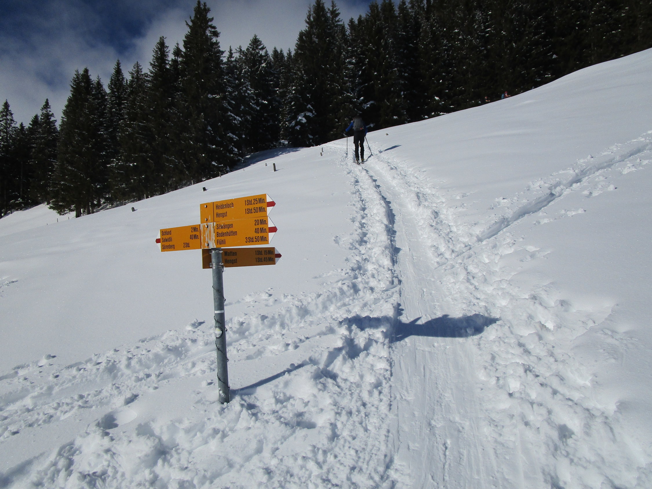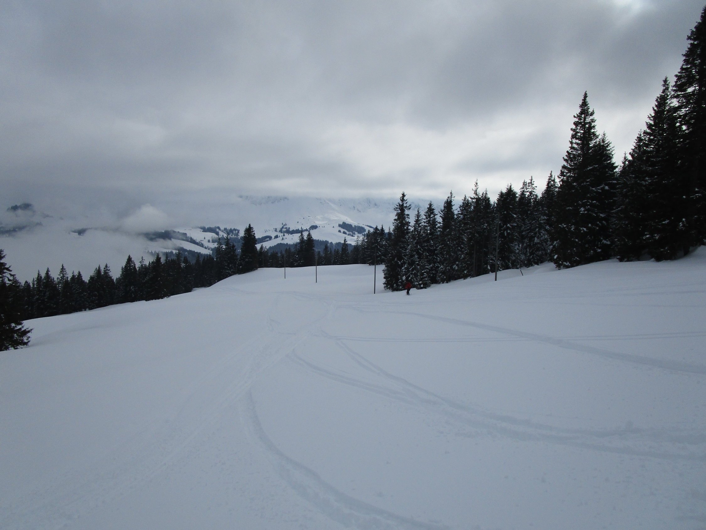 Wir befanden uns bis kurz oberhalb Silwänge im White Out, daher sehr mühsames abfahren den vorhandenen Spuren entlang.Unterhalb Silwänge dann wieder etwas bessere Sichtverhältnisse.