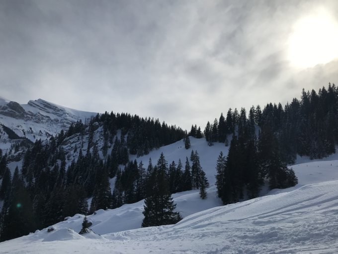 Ziemliche Autobahn zur Alp Gumm aber schöner Tag mit doch noch ein wenig Pulver. Der Gipfelhang hat noch genügend Schnee aber dürfte mehr werden...